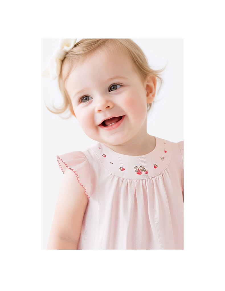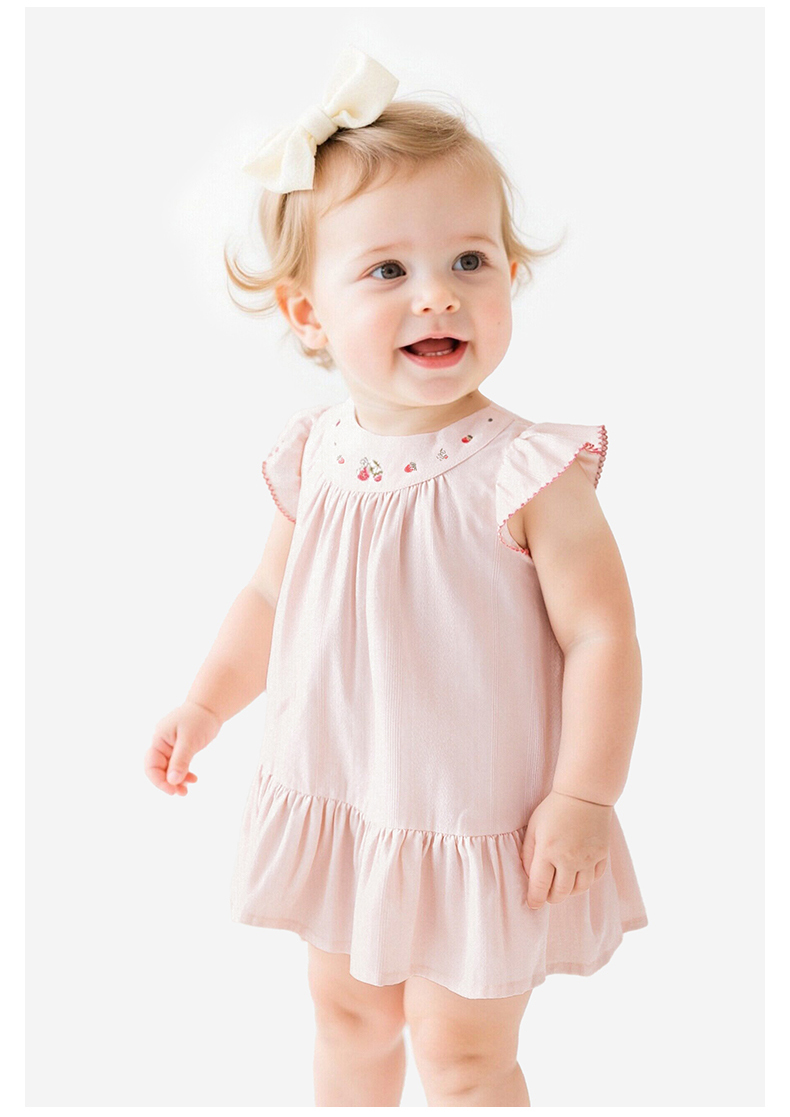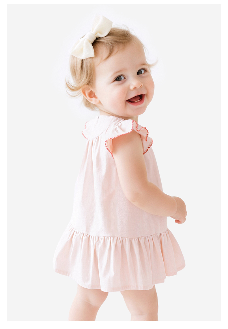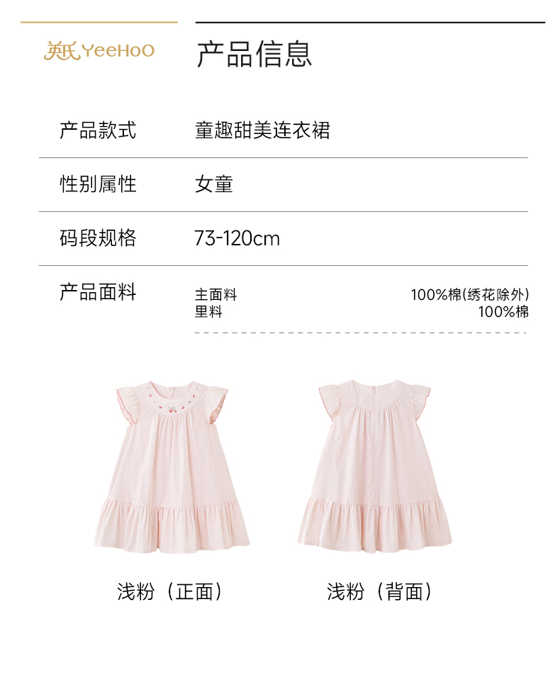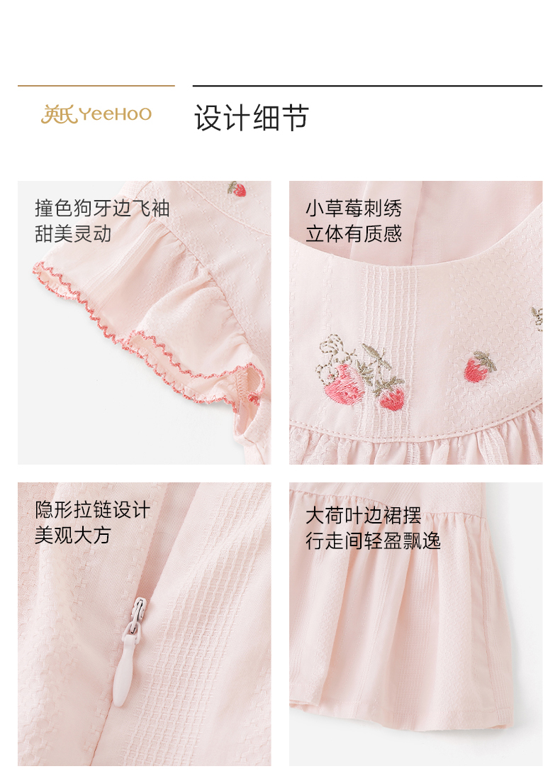 【商场同款】英氏女童短袖连衣裙夏新款浅粉裙子宝宝纯棉公主裙