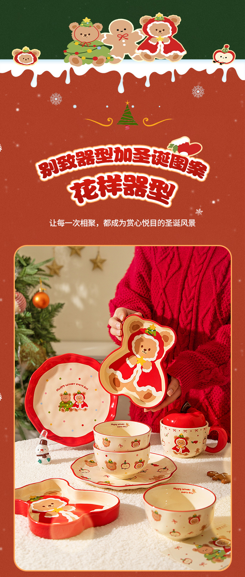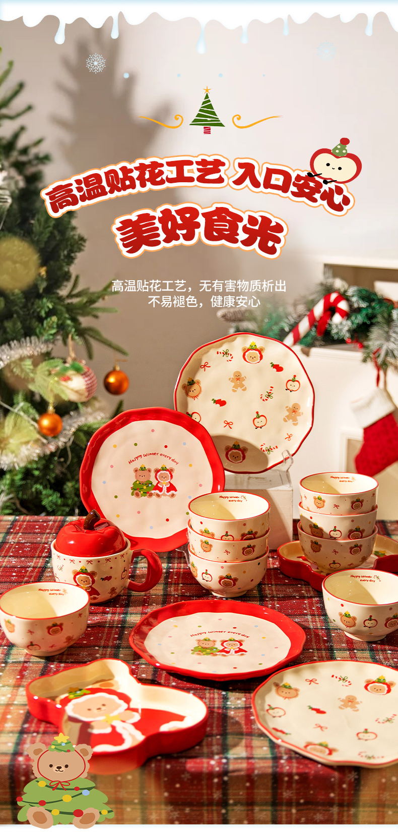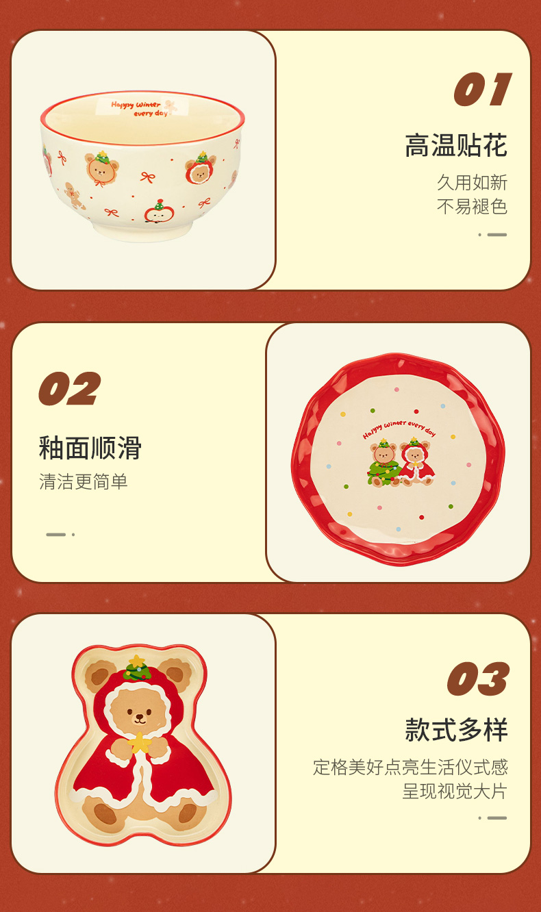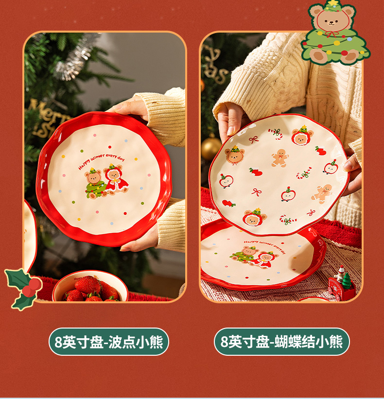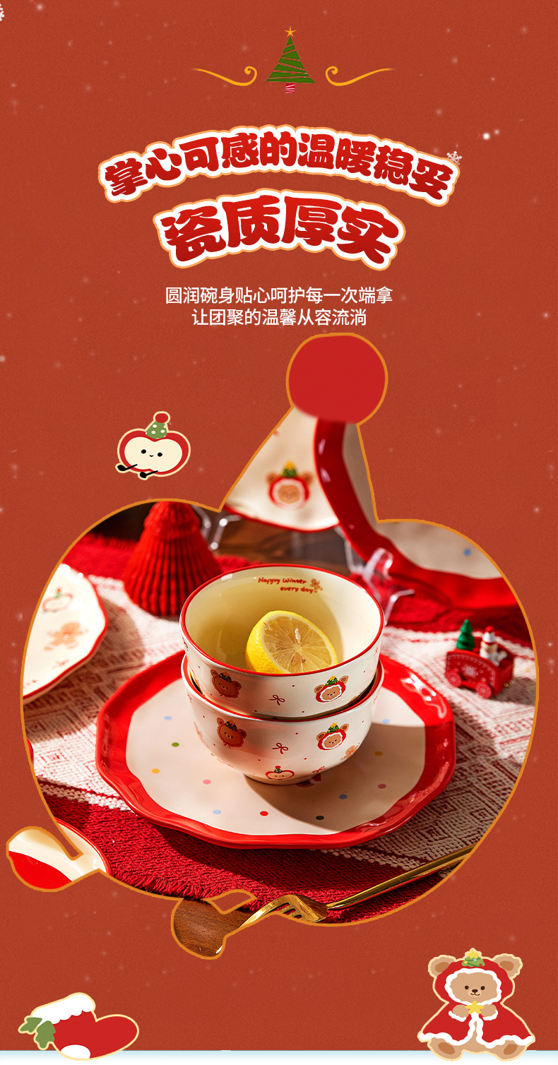 摩登主妇原创圣诞小熊餐具饭碗家用2025新款高颜值碗具餐盘子可爱生日礼物