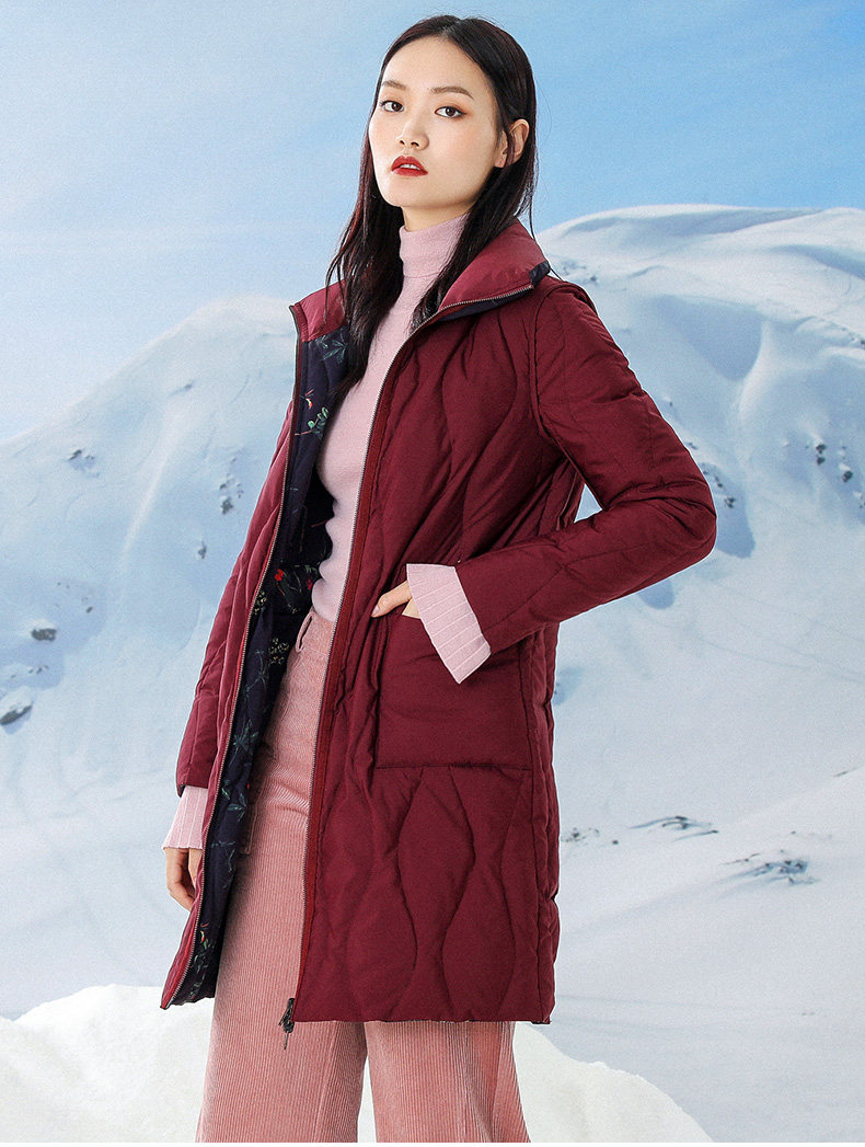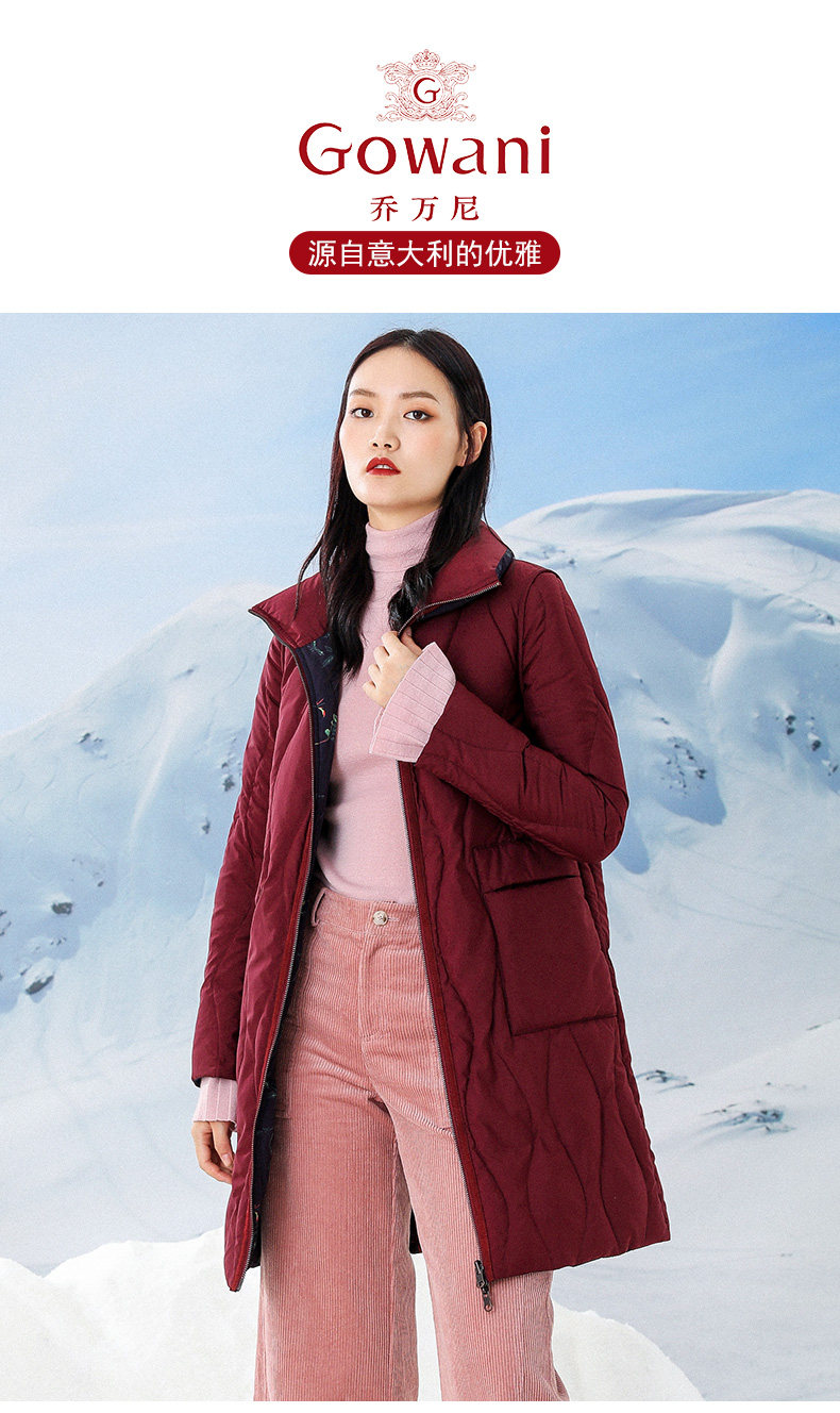 乔万尼冬季白鸭绒羽绒服双面穿宽松中长款EN4T762