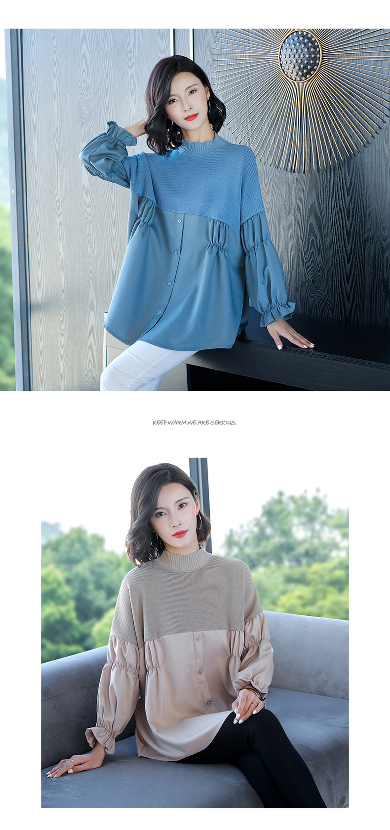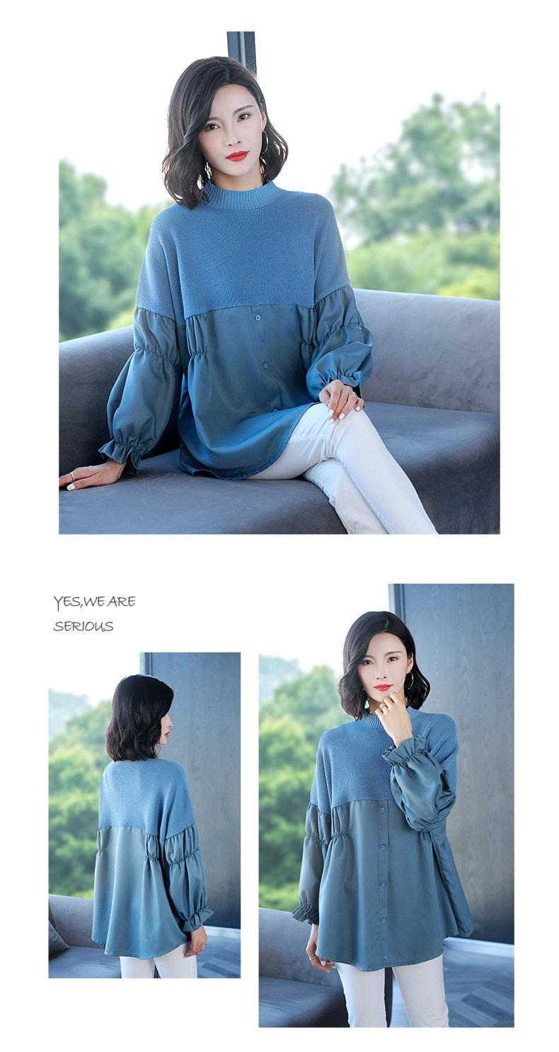 QD-MC-11808大码女装拼接针织衫时尚潮流服装秋冬显瘦毛衣