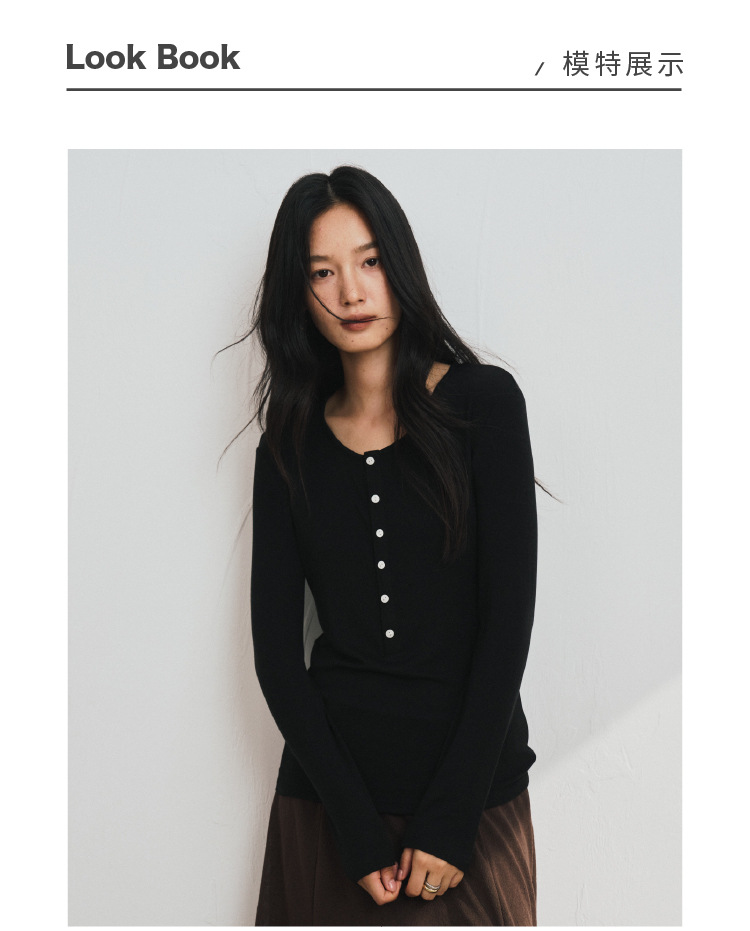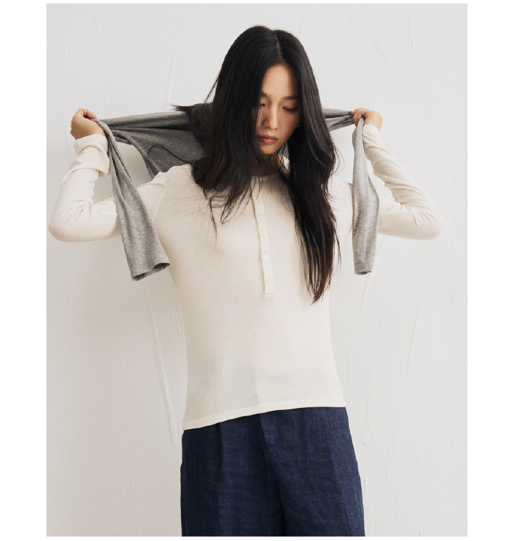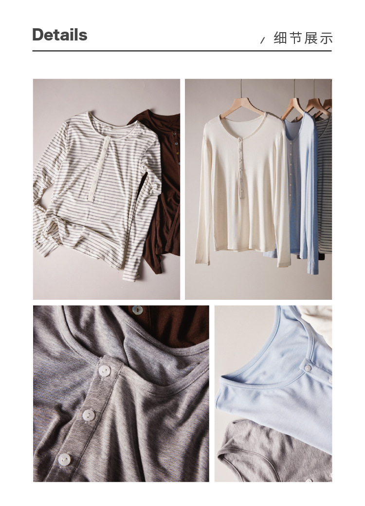 【2025秋冬新品】天丝醋酸羊毛・半扣打底衫 圆领修身莱赛尔针织衫纯色条纹长袖上衣
