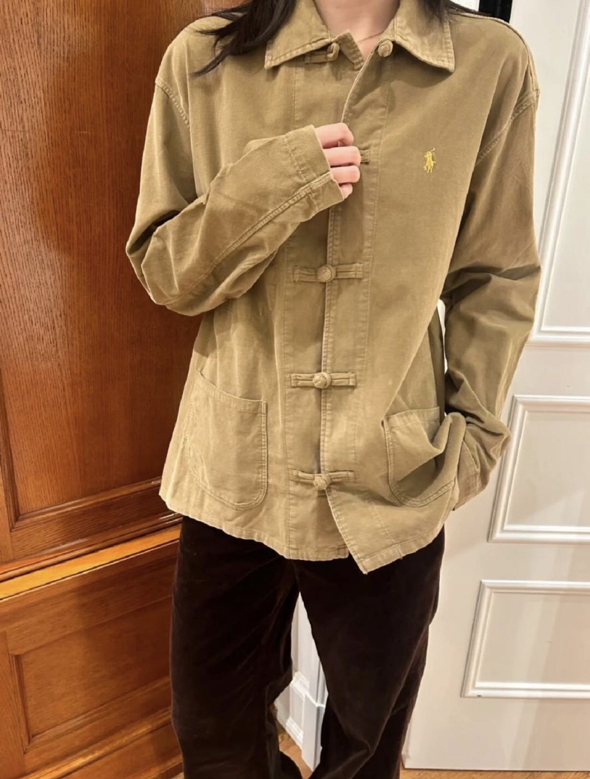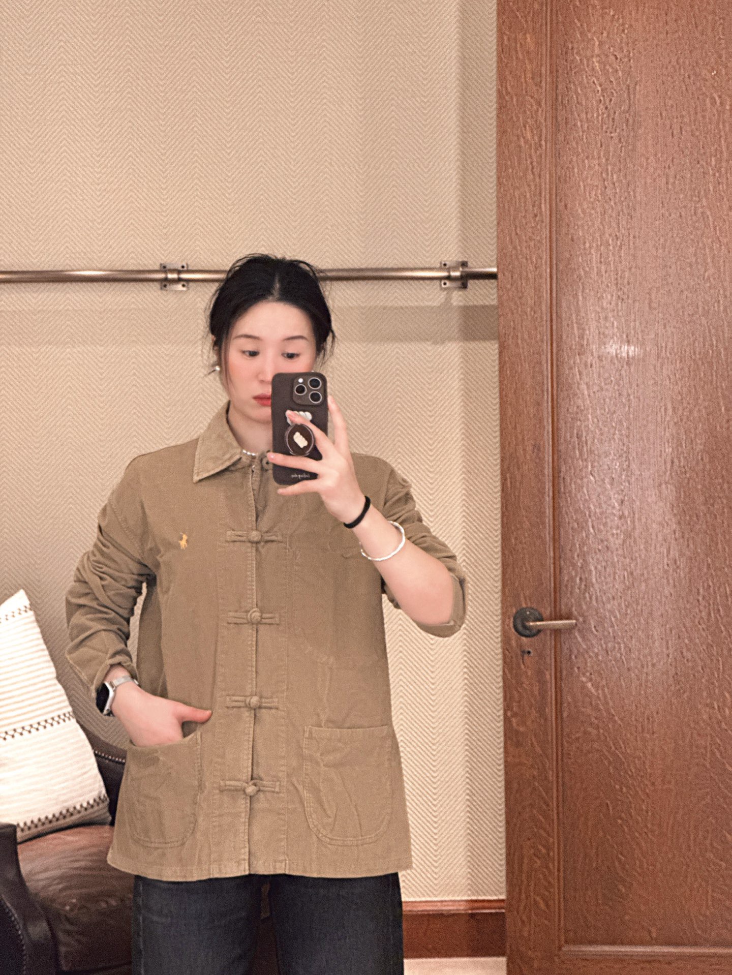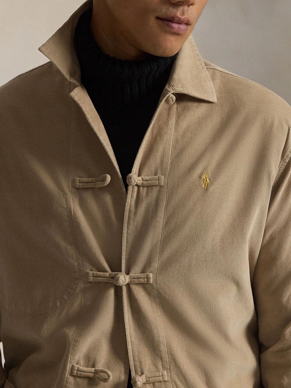 100棉水洗灯芯绒新中式国风盘扣翻领夹克外套