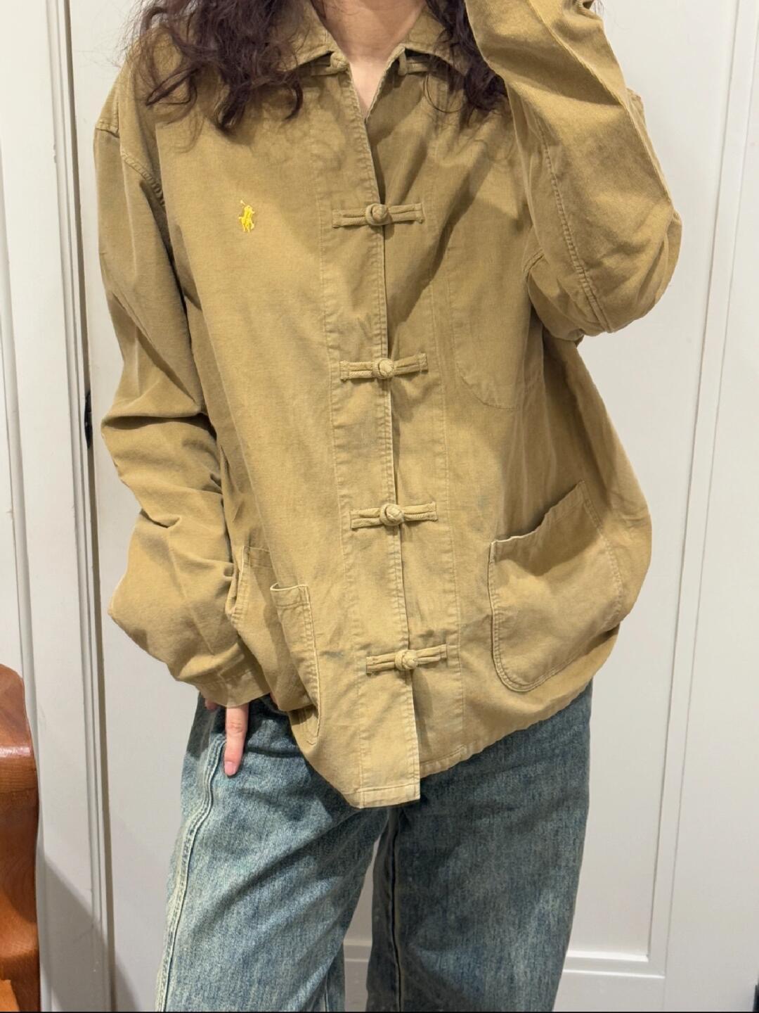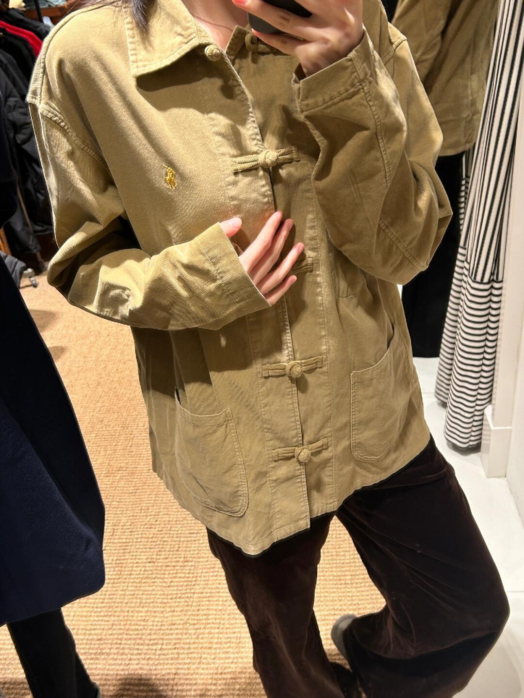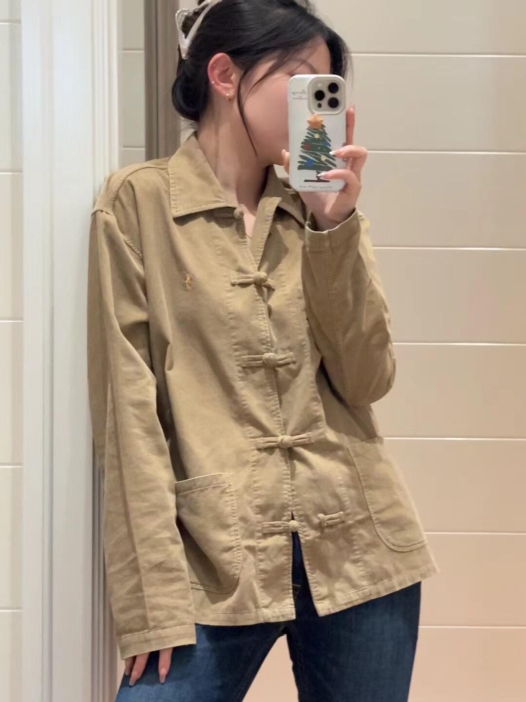 100棉水洗灯芯绒新中式国风盘扣翻领夹克外套
