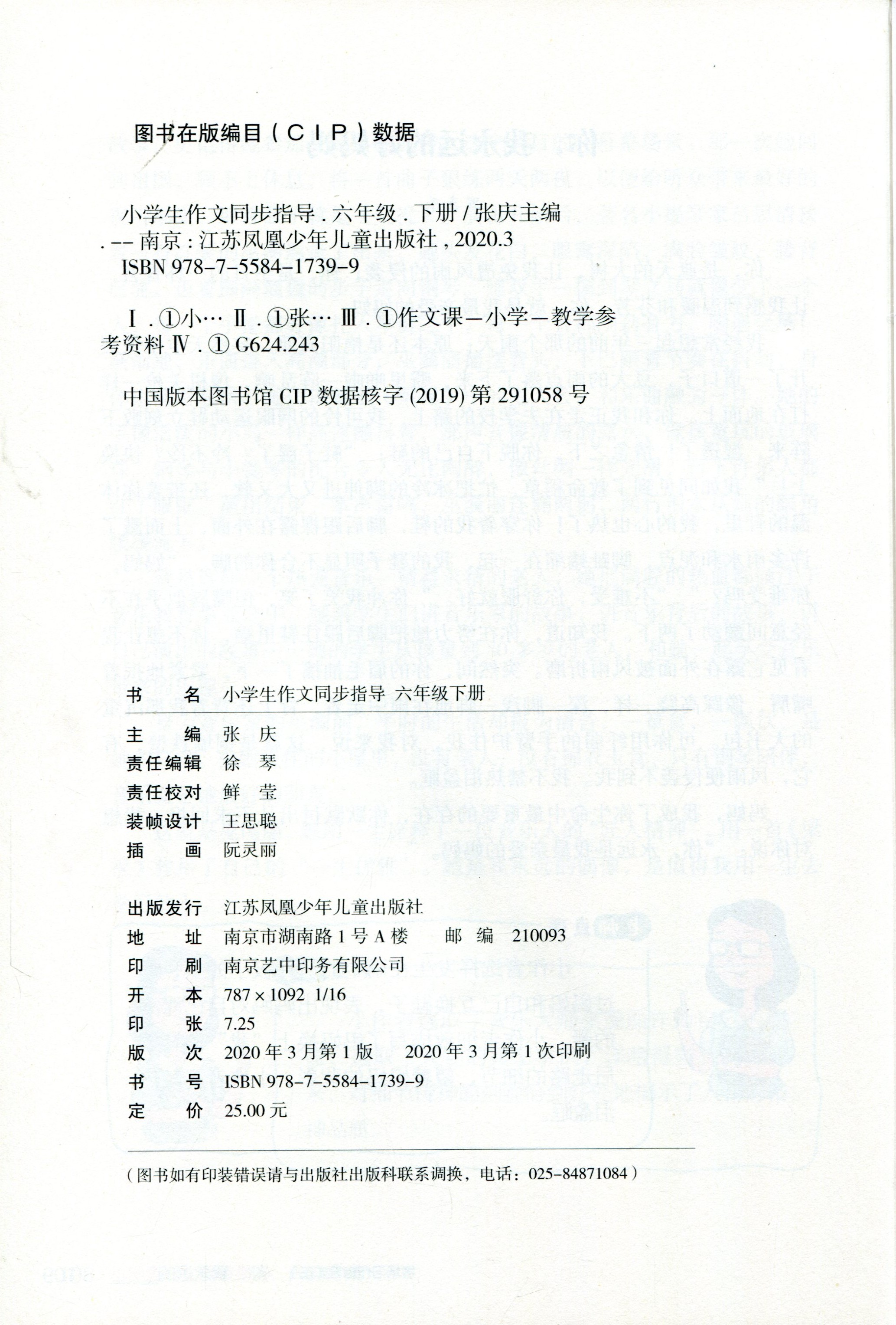 小学生作文同步指导 六年级下册 6下 小学作文教学参考资料 小学教辅