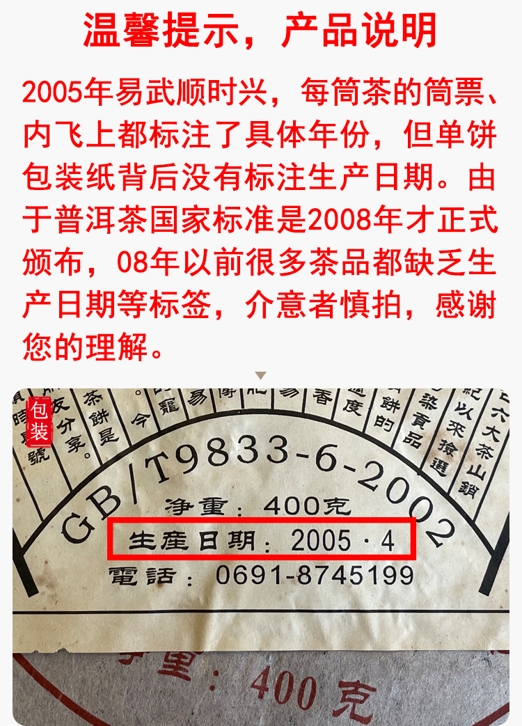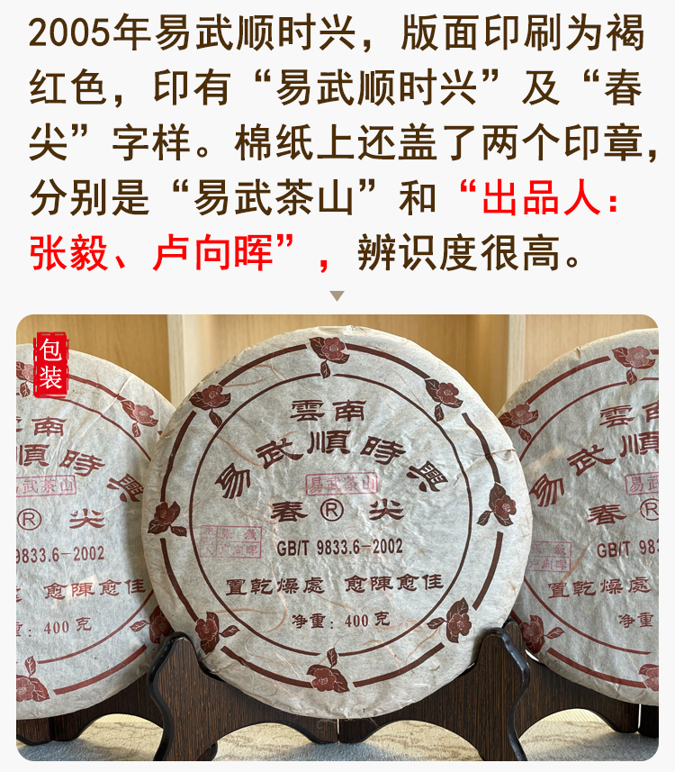 2005年张毅易武顺时兴号经典老易武标杆普洱老生茶 纯正老易武 原件原提干仓真品一片价