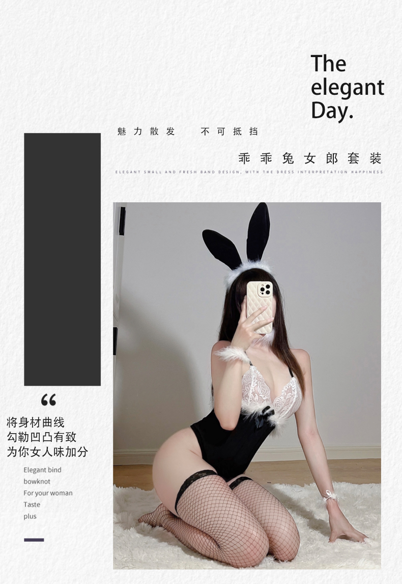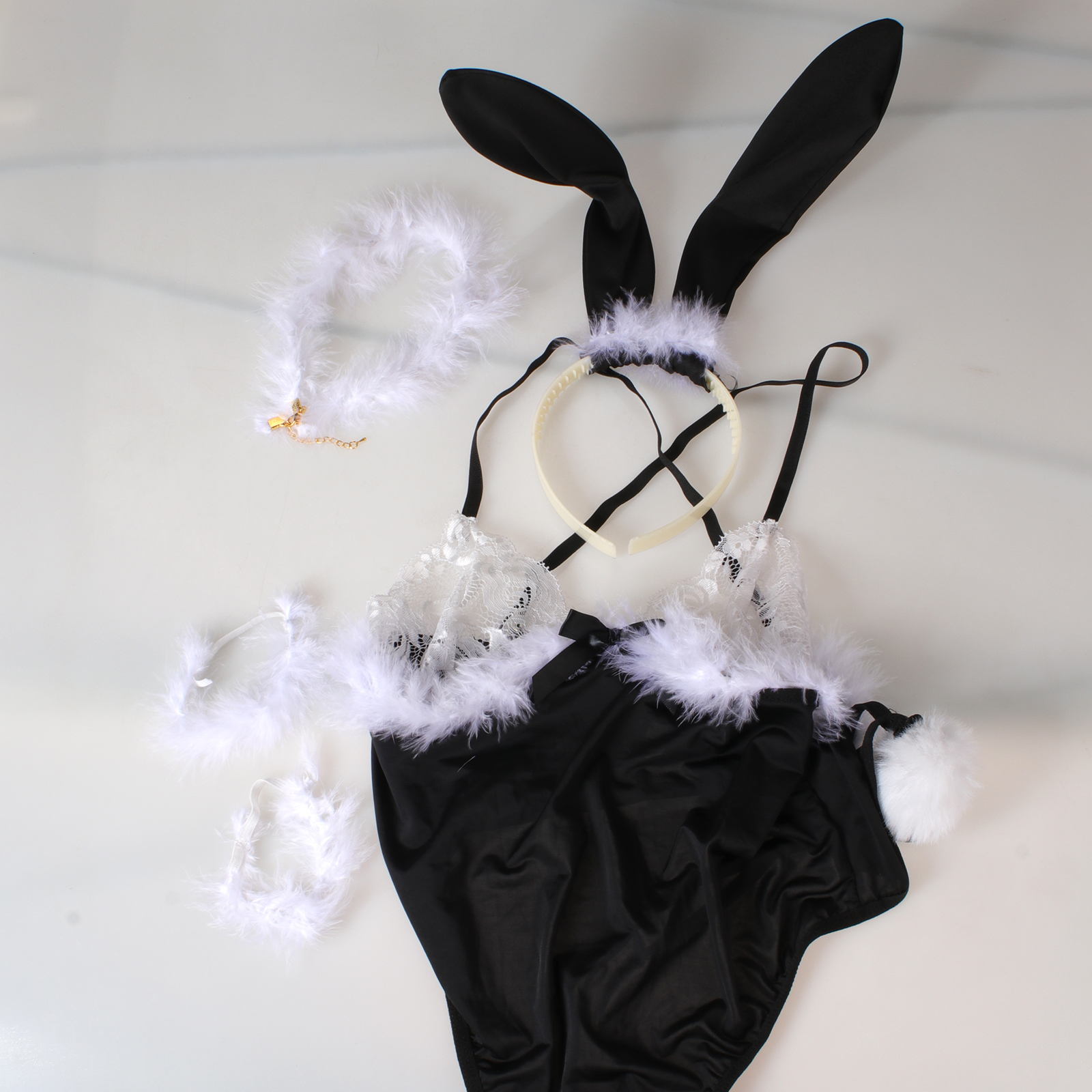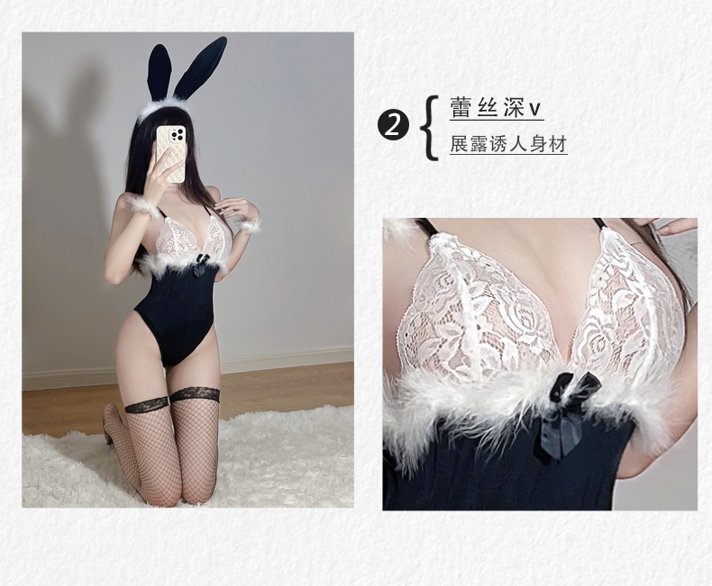 漫渺性感蕾丝毛绒兔女郎情趣内衣女连体衣挑逗制服诱惑激情开档套装