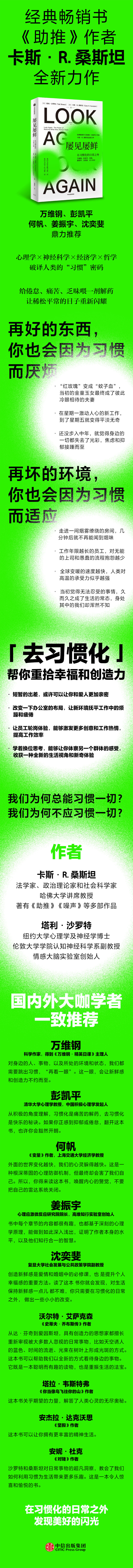 纽约心理学及神经学博士塔利·沙罗特、哈佛大学法学教接卡斯·R.桑斯坦结合心理学、神经科学、经济学和哲学的成果与方法,深入研究了人类的习惯机制,展示了广泛存在于会生活各个方面的“习惯化”和“去习惯化”现象。