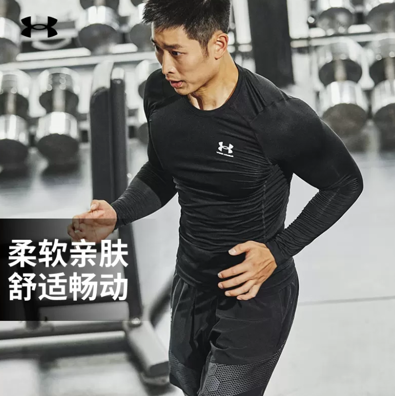 安德玛UA男子百搭春秋款户外运动上衣跑步训练卫衣长袖1343242-001