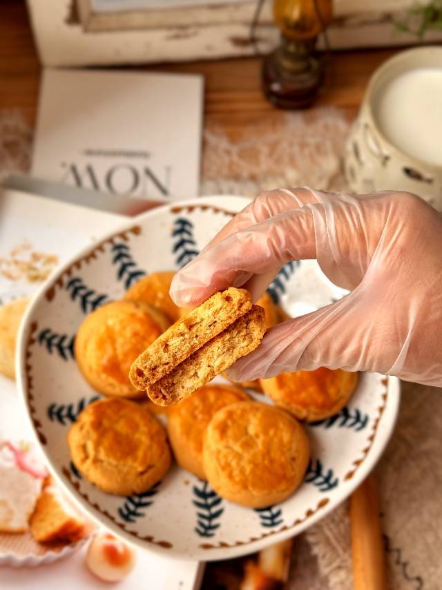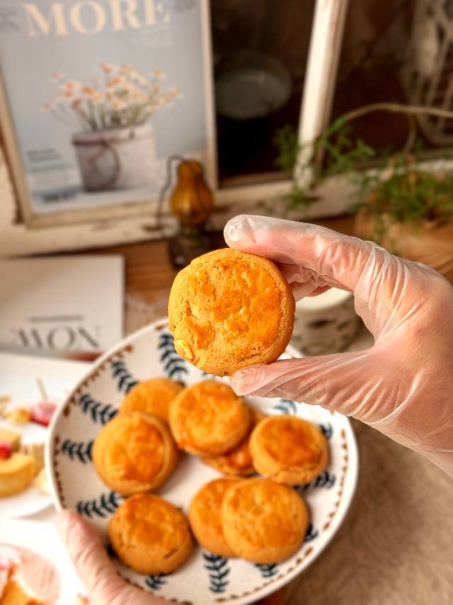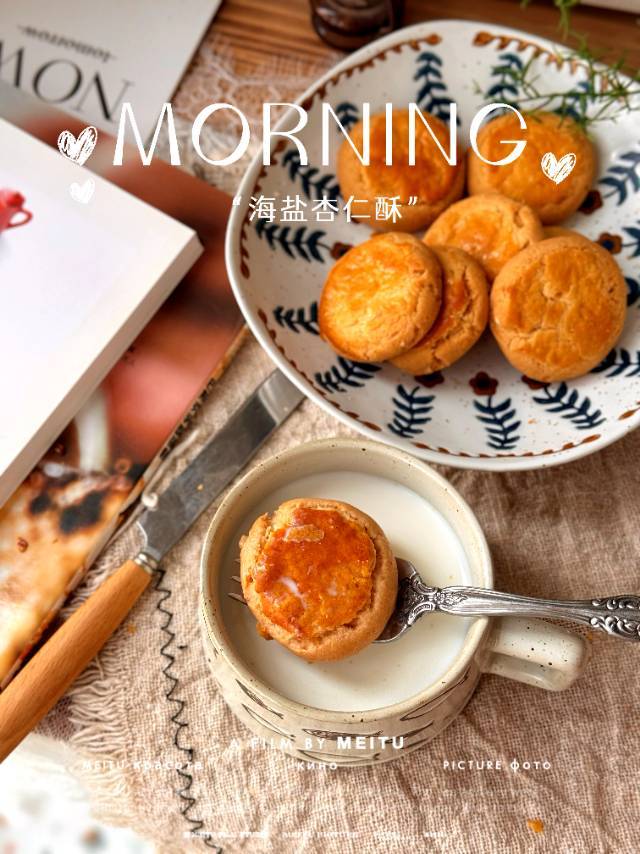 制作面团会直接加入蓝钻杏仁片一起拌,点缀微微海盐!成品后超级香,咬一口就掉渣,奶香杏仁香完美融合,层层叠加!