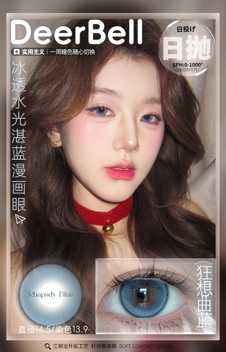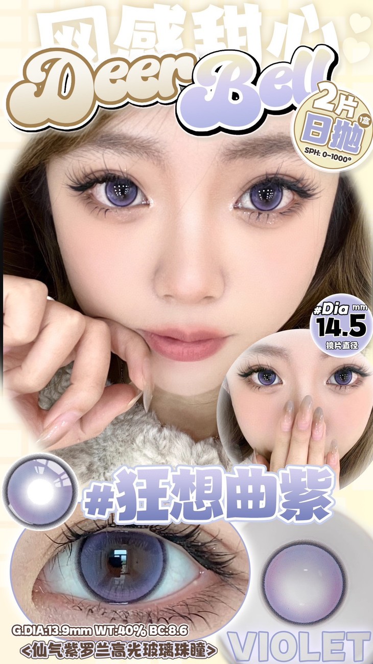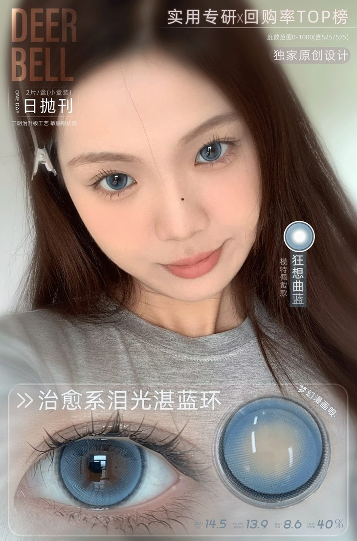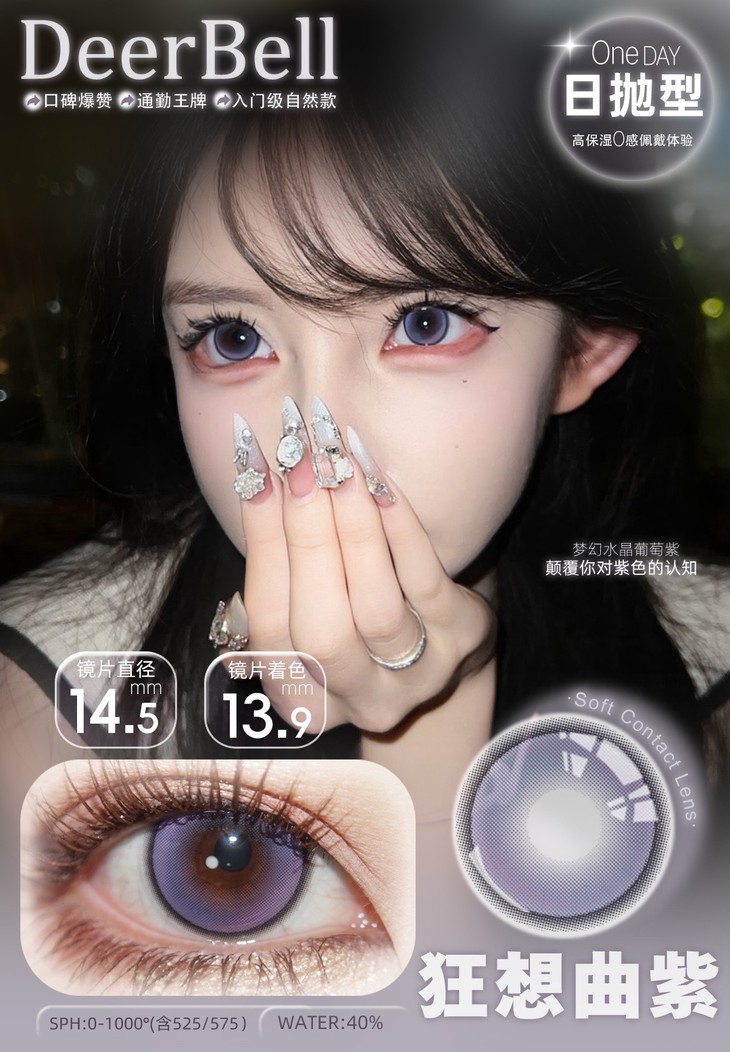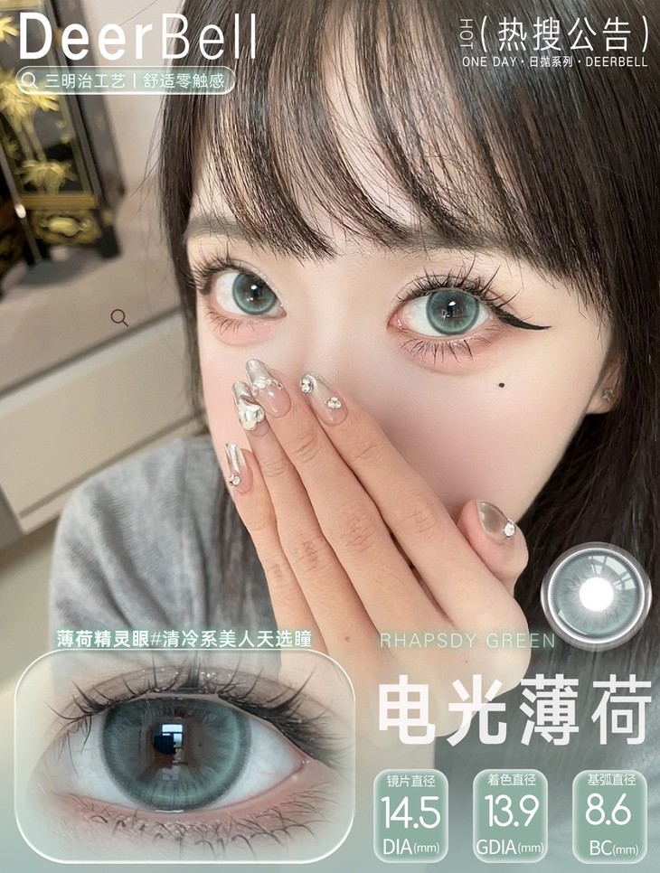 Deerbell日抛隐形眼镜 电光薄荷/狂想曲紫/狂想曲蓝 1盒/2片