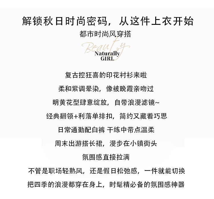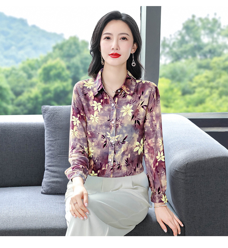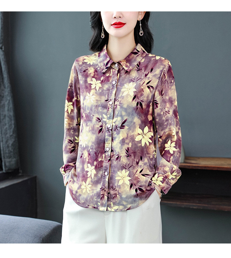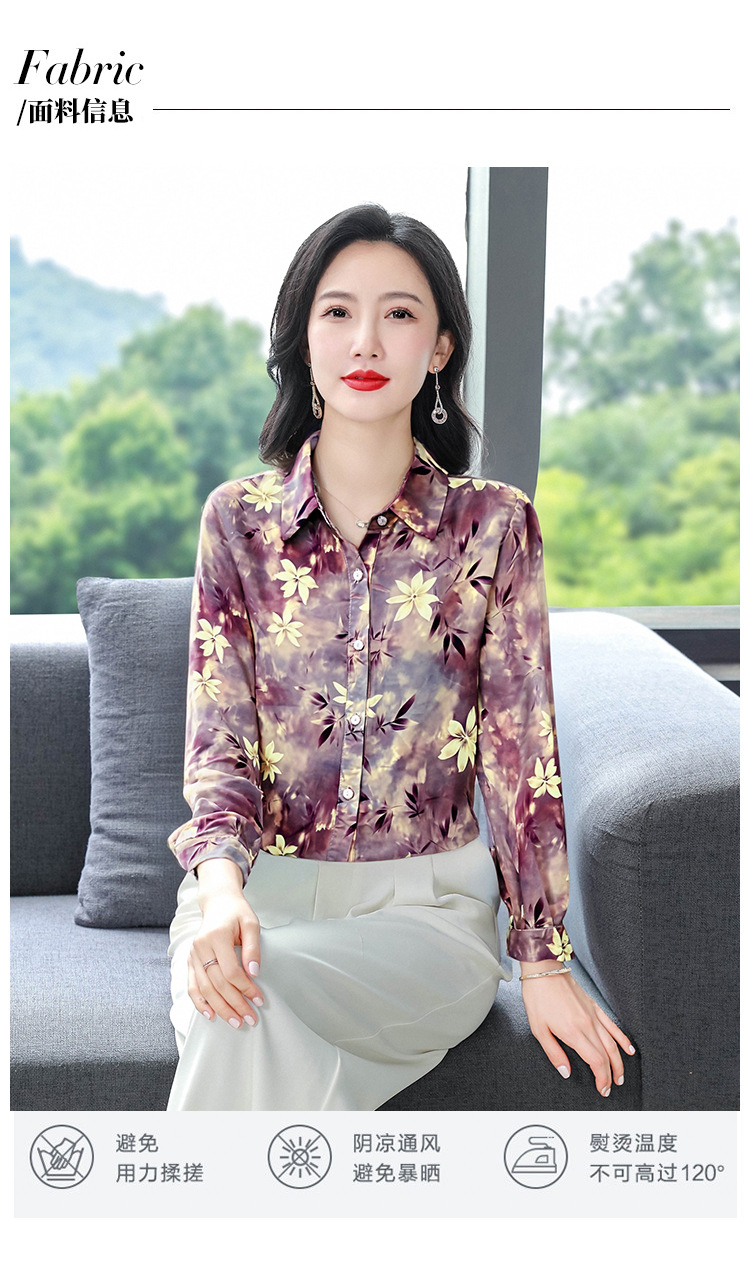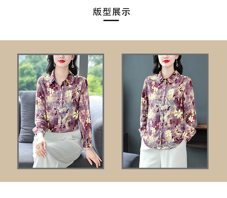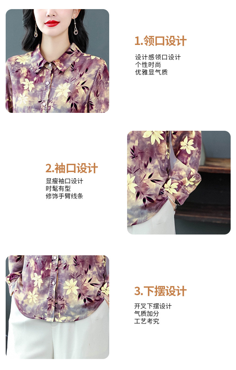 KQL E333M3291妈妈印花衬衫减龄大码长袖遮肉宽松洋气上衣