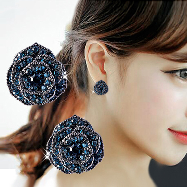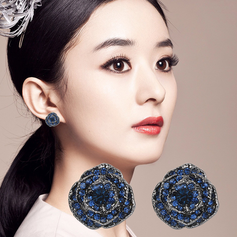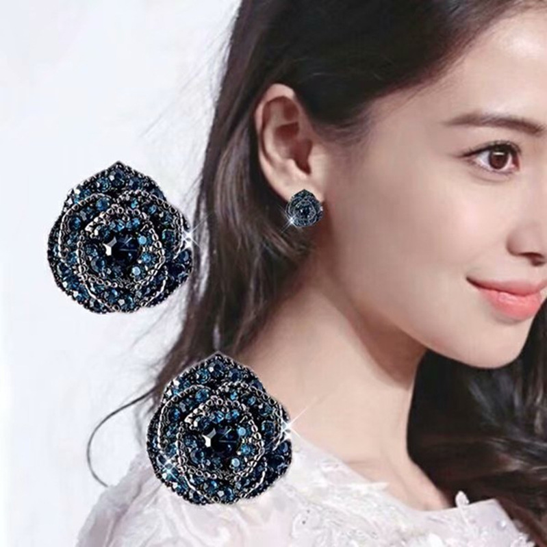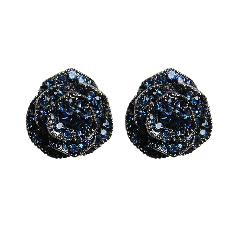 JU-ABD1120欧美风复古玫瑰花耳钉女韩国气质百搭镶钻耳环简约个性网红耳饰品