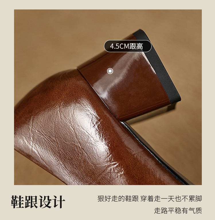 【货 号】A2654【鞋面材质】头层牛皮【内里材质】头层羊皮【垫脚材质】 头层羊皮【鞋底材质】橡胶大底【跟 高】4.5厘米【颜 色】黑色/杏色/红棕色【尺 码】34-39