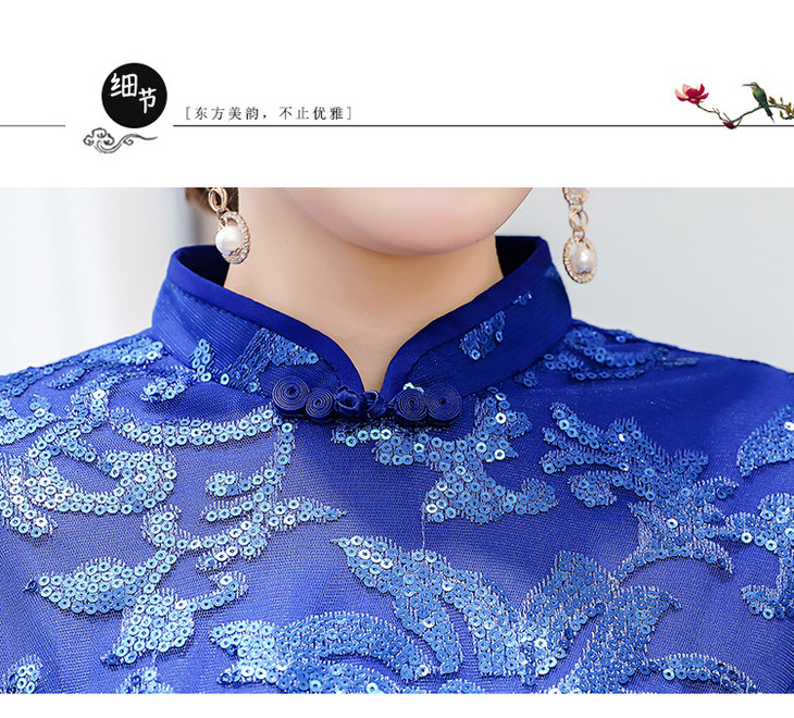 KYFS-9369修身鱼尾蓝色长款走秀礼服连衣裙
