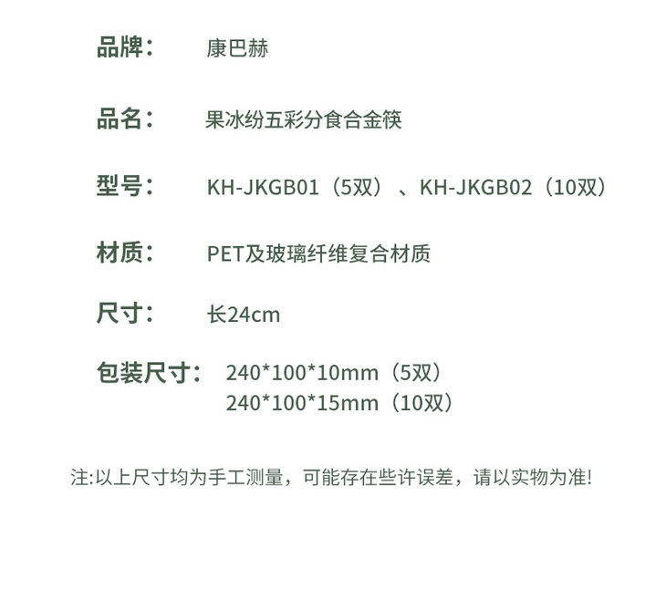 【康巴赫】果冰纷【10双装】-防黄黑曲霉 耐高温筷子家用耐高温防滑 一人一筷专人高颜值合金筷 【14050409】KH-JKGB02