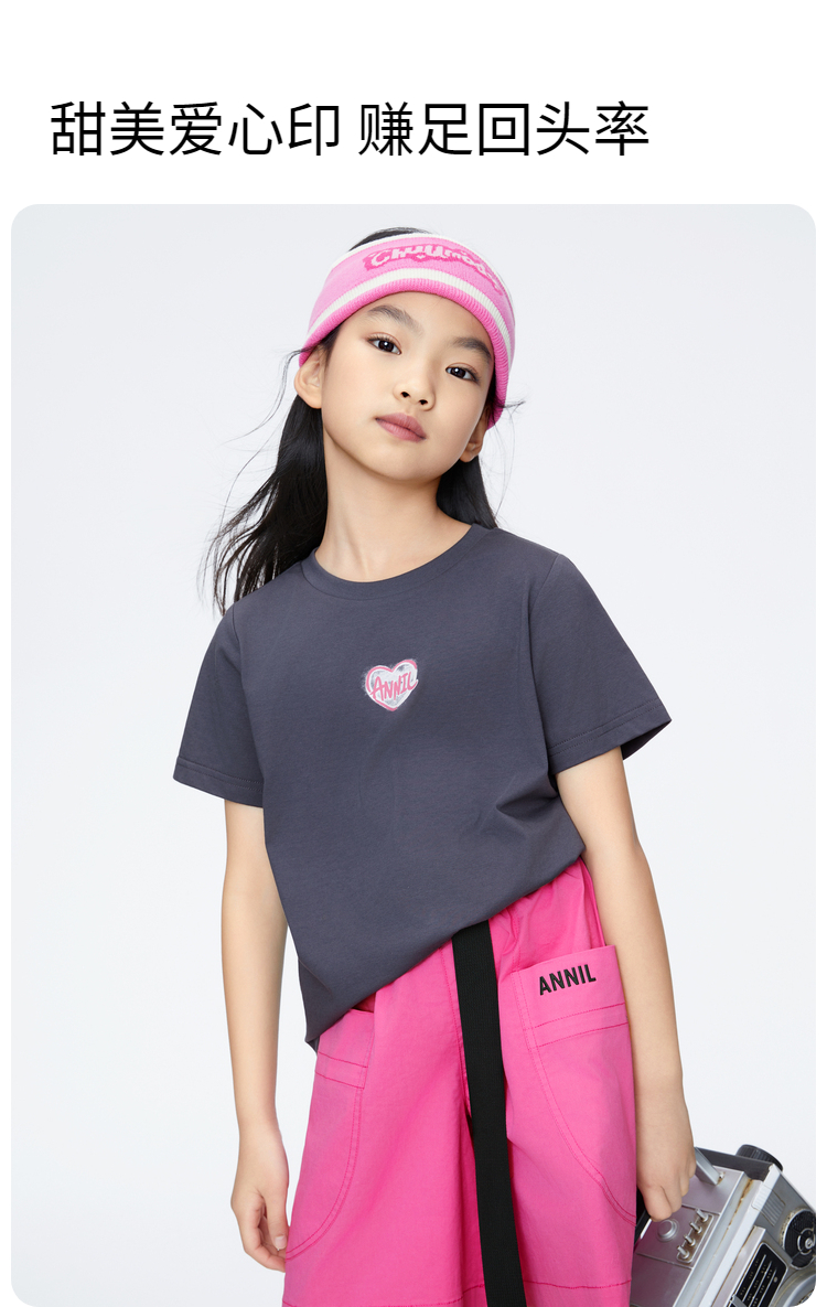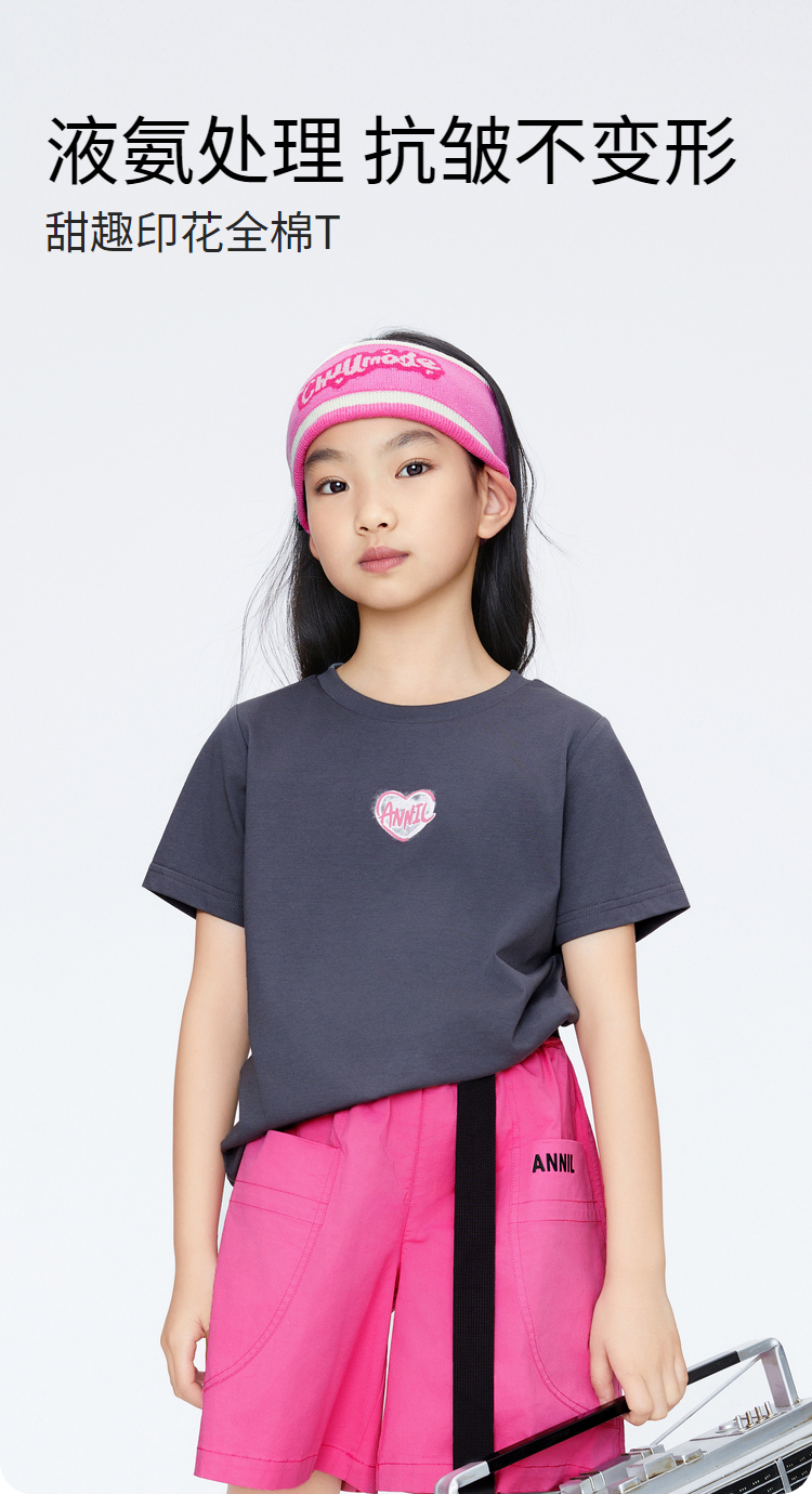 女童甜趣印花全棉T圆领短袖上衣夏季新款安奈儿童装实体店同款AG421767