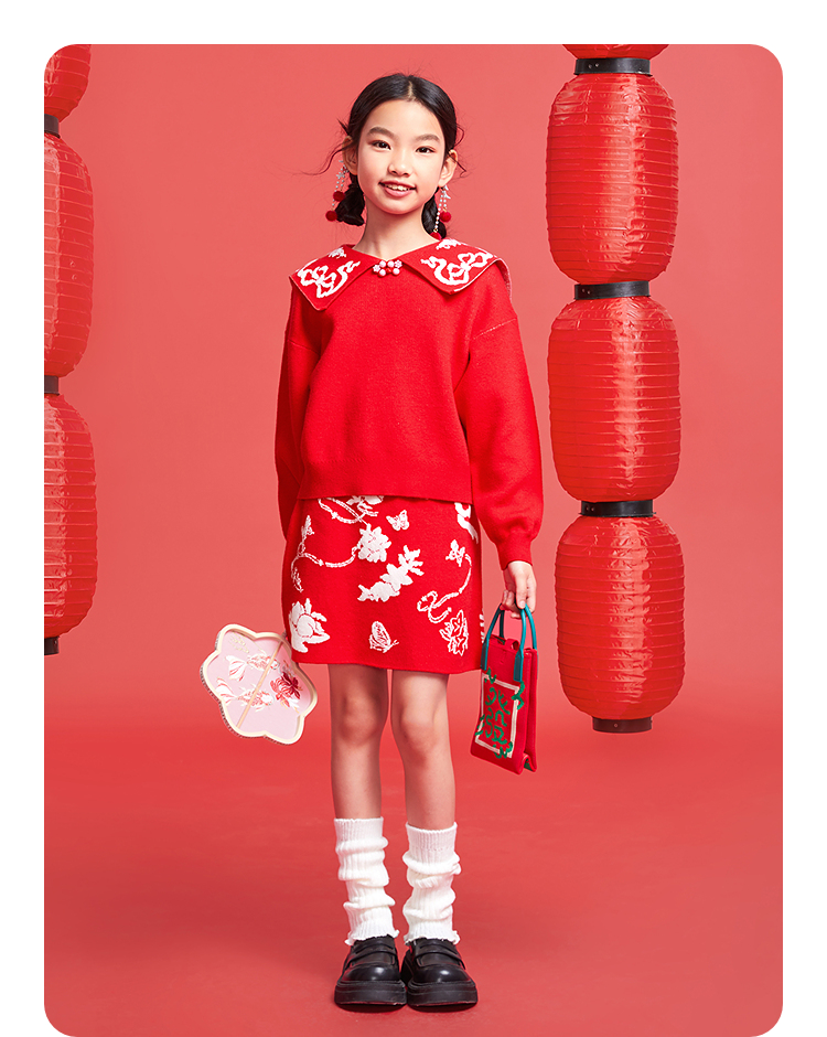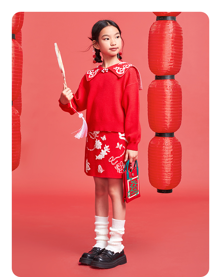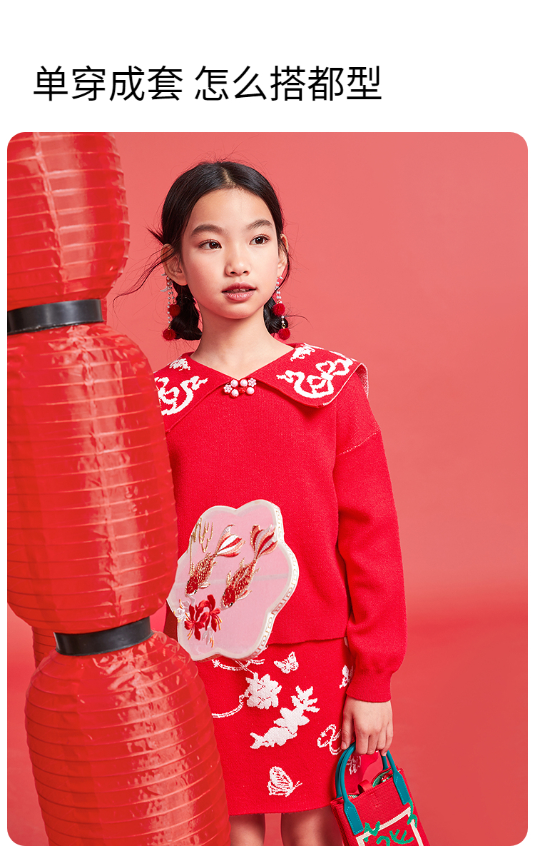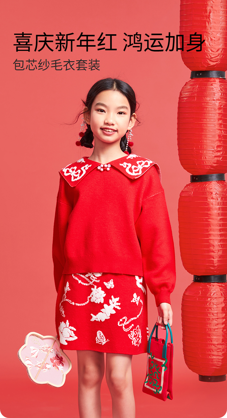 女童翻领针织套装春季新款安奈儿童装实体店同款AG514530