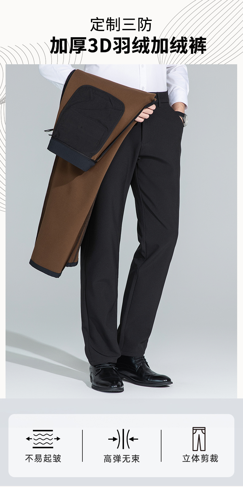 【含羽绒加绒裤】罗蒙加绒休闲裤男士商务版易打理保暖舒适通勤休闲长裤子男
