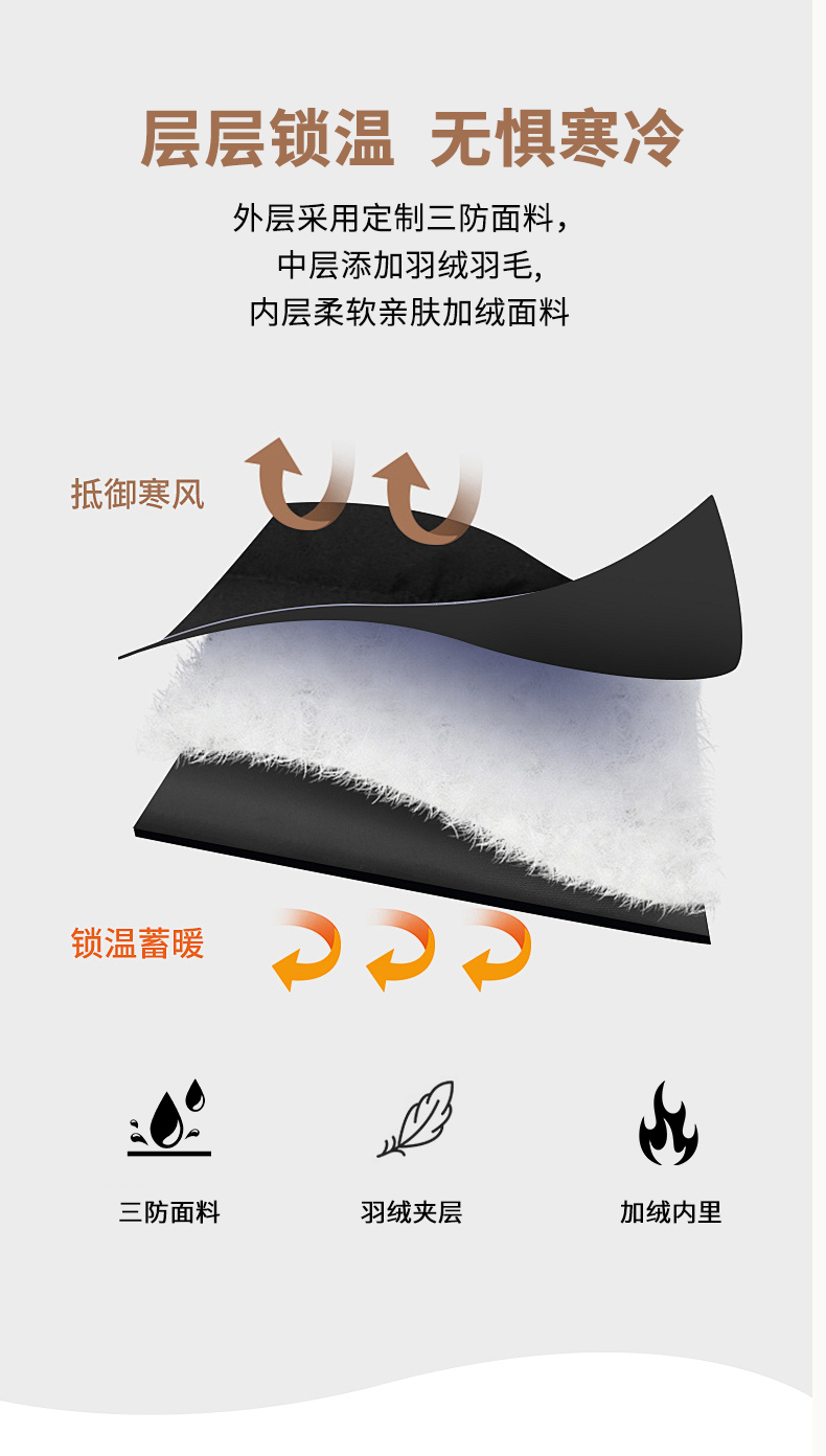 中间夹层:羽绒羽毛(其他配料除外)