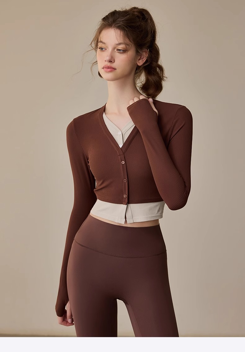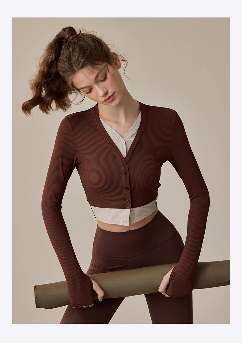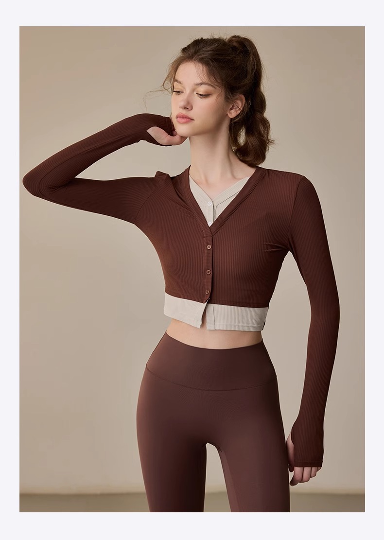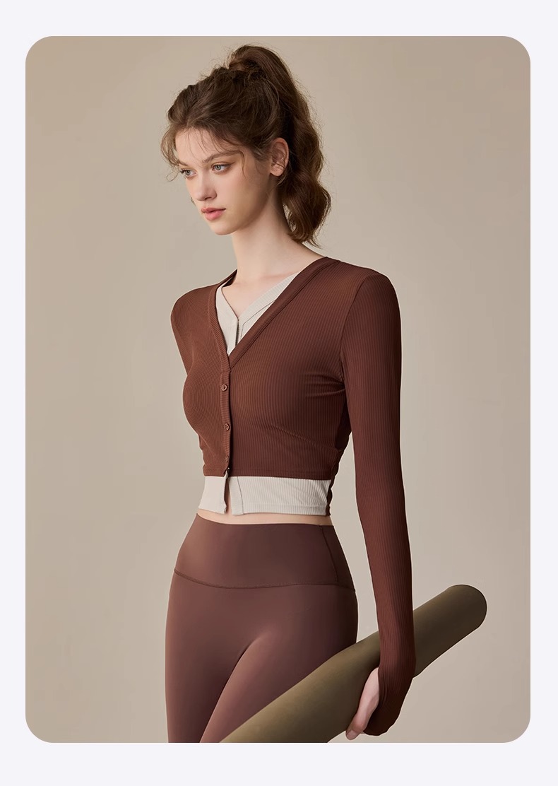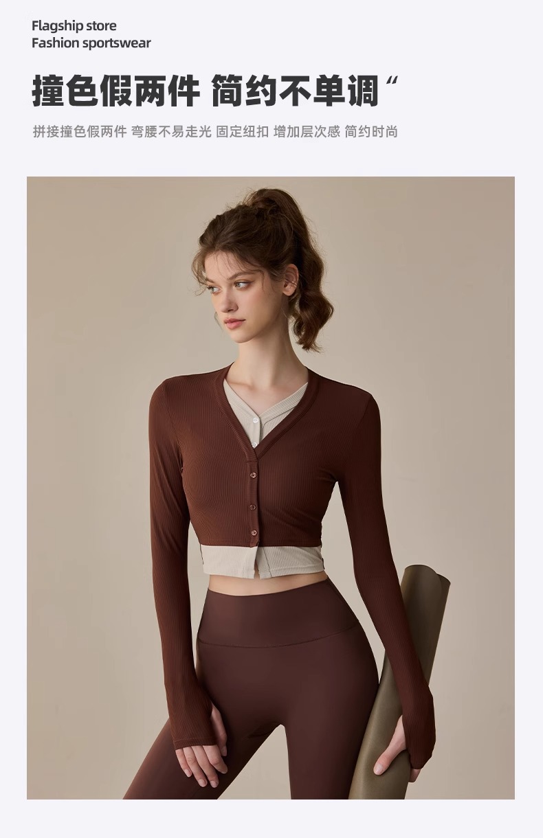 跃牌【周游世界系列】2024秋冬新款撞色假两件套头高弹透气螺纹运动长袖TP0818