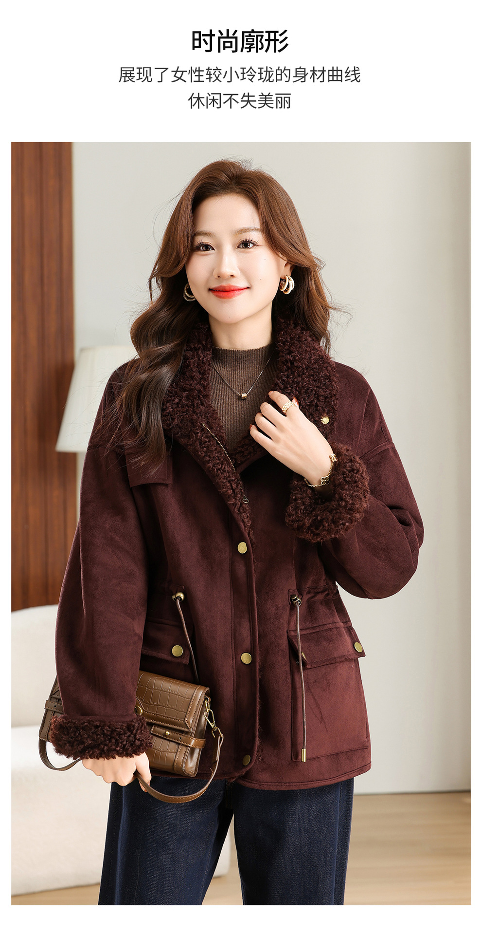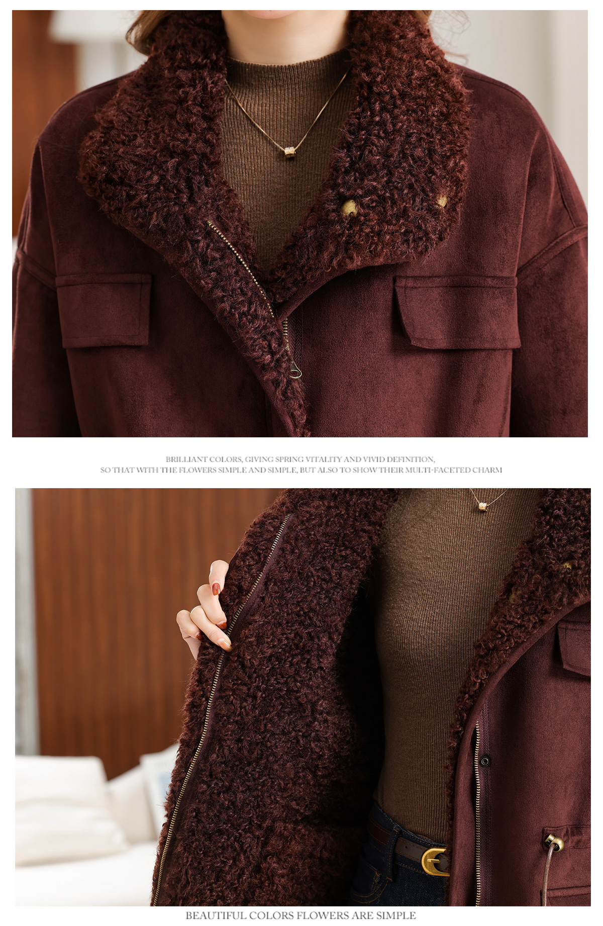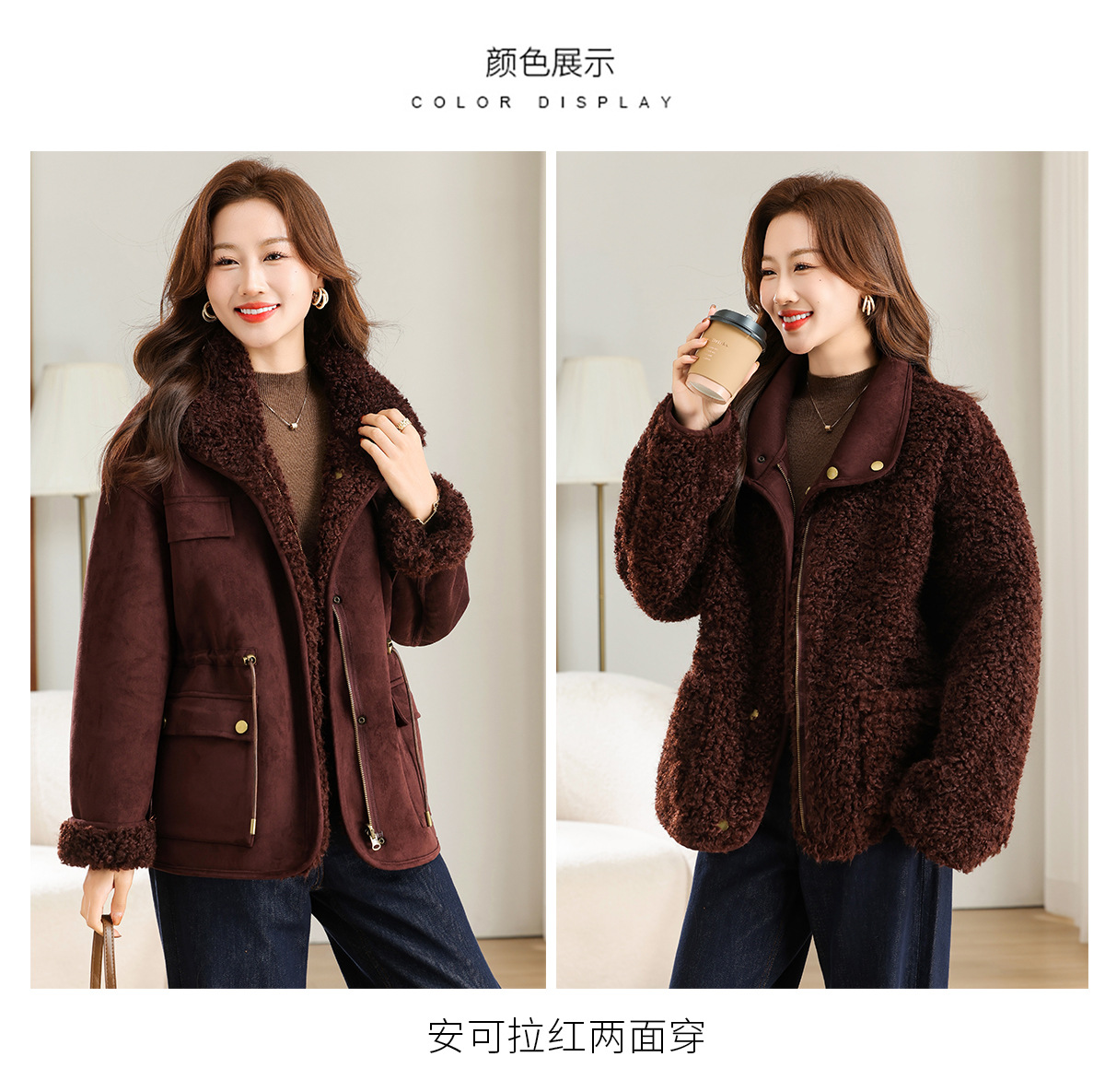丁摩 皮毛一体外套女冬季新款【两面穿】洋气加厚羊羔毛上衣5ZF-8613