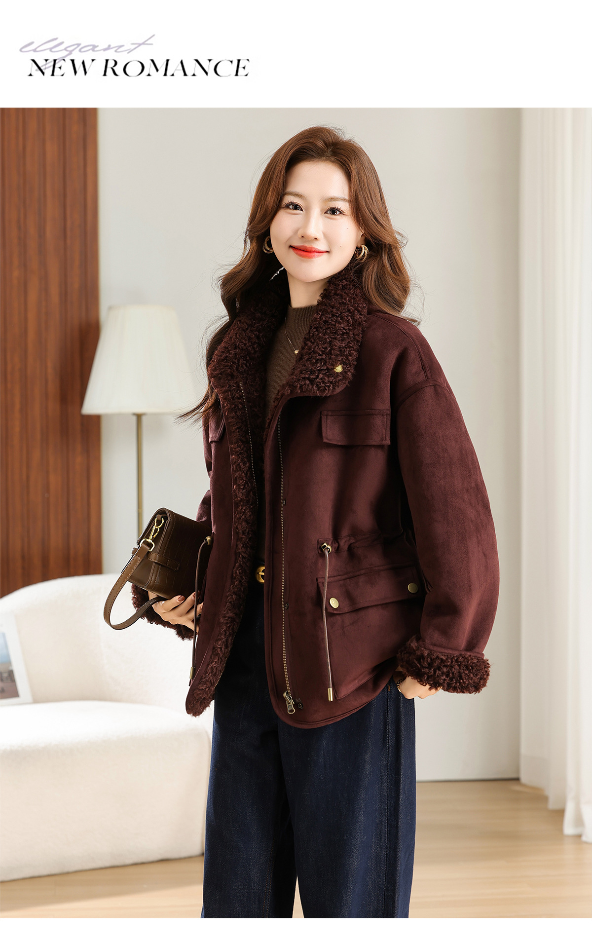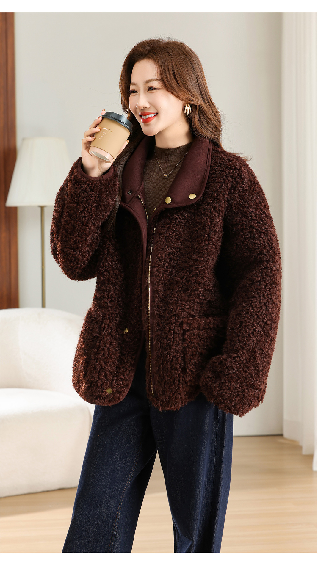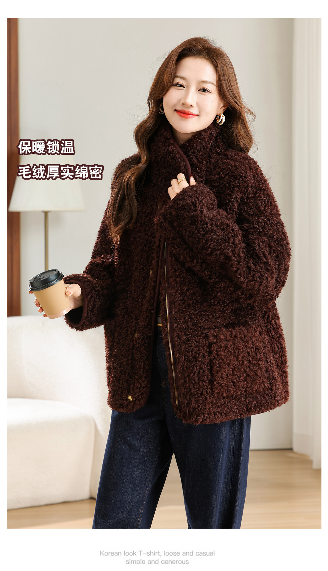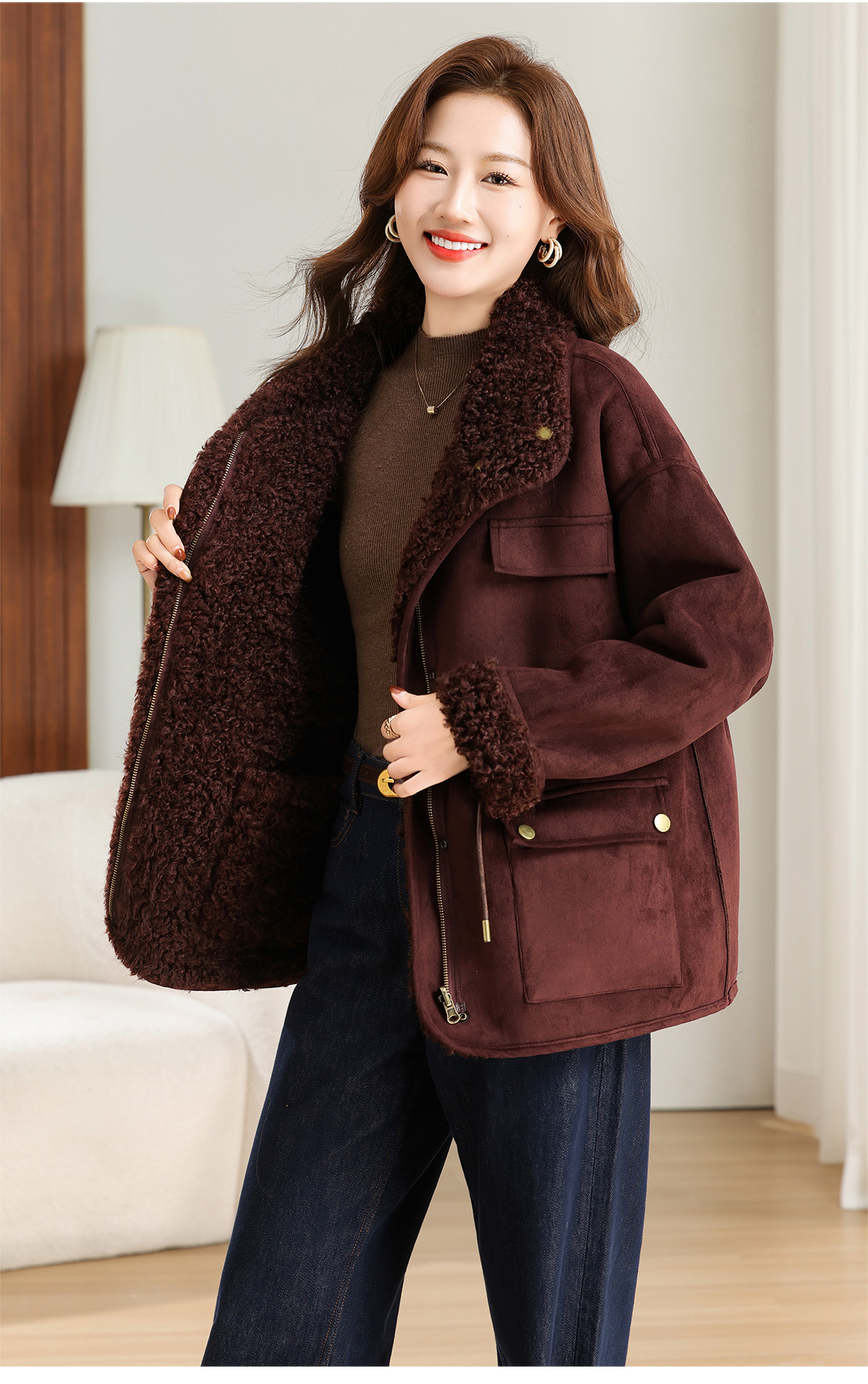 丁摩 皮毛一体外套女冬季新款【两面穿】洋气加厚羊羔毛上衣5ZF-8613
