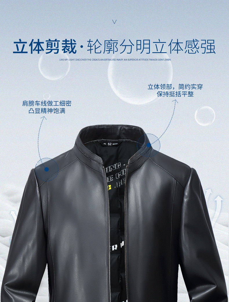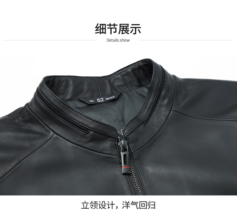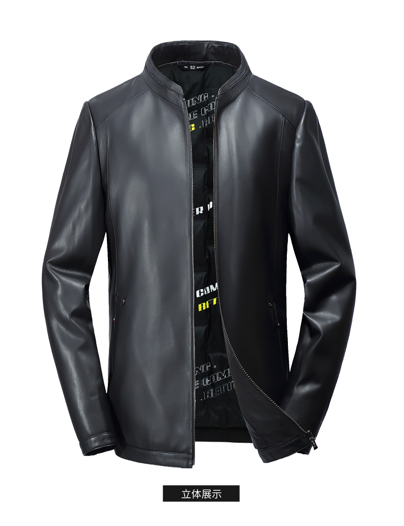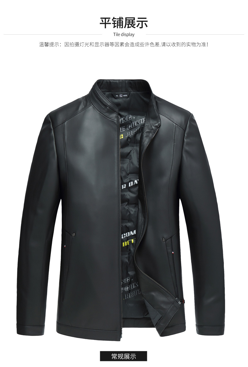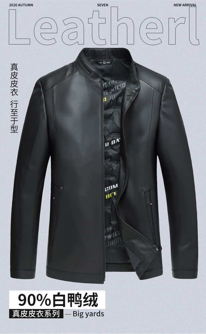【真皮】大依优型白鸭绒绵羊皮大码皮衣立领休闲加肥加大外套大号男皮草