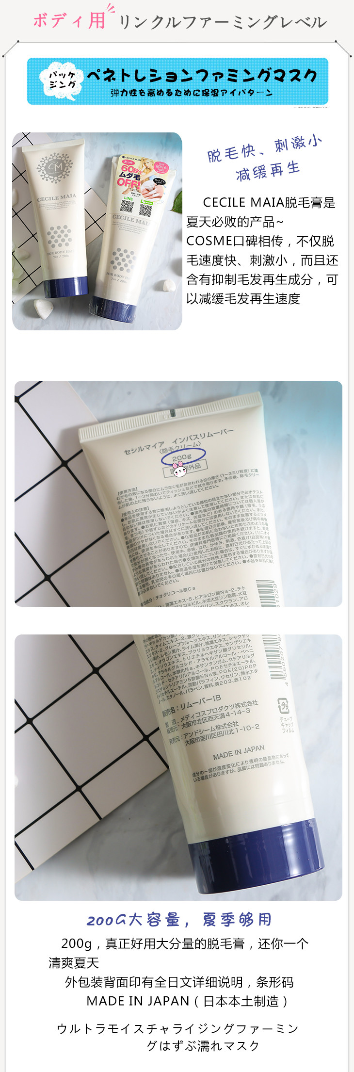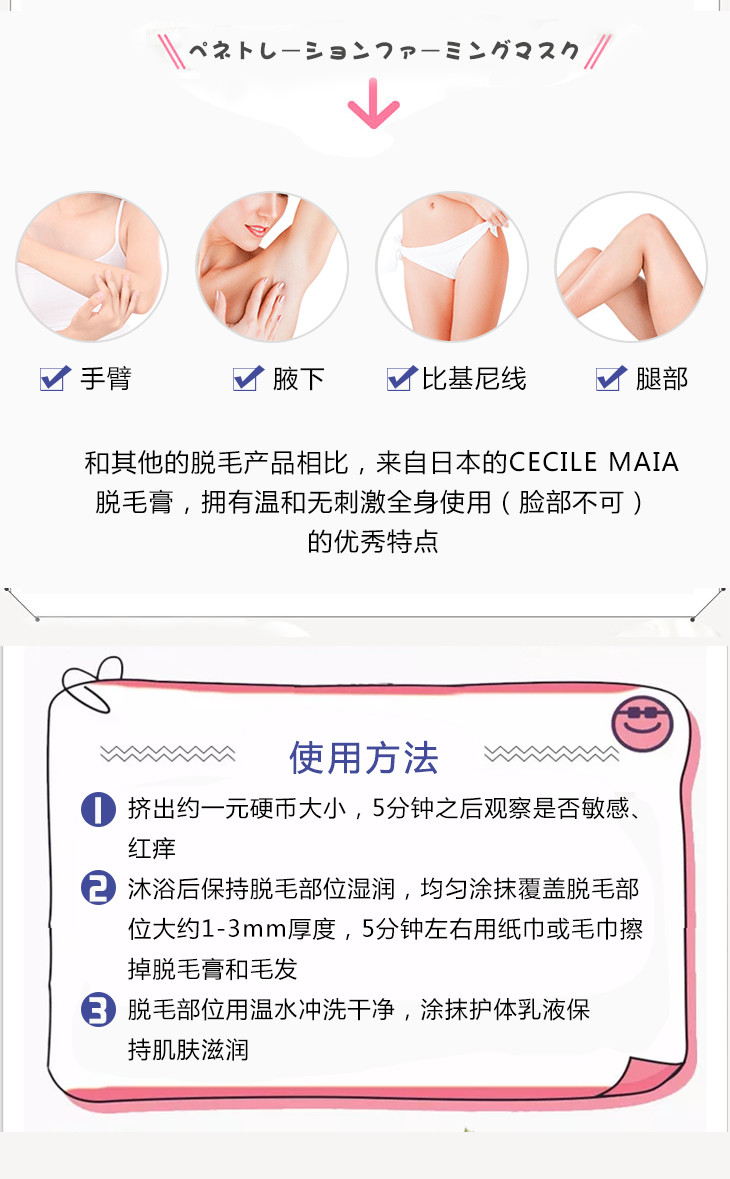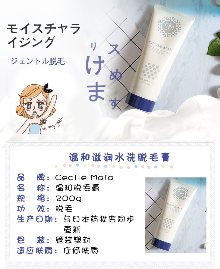 【门店直发】日本Cecile Maia 脱毛膏 温和快速chu体毛腿毛腋下四肢全身200g