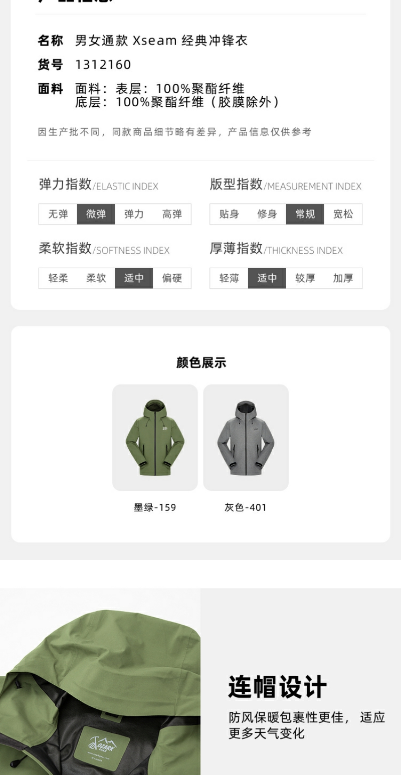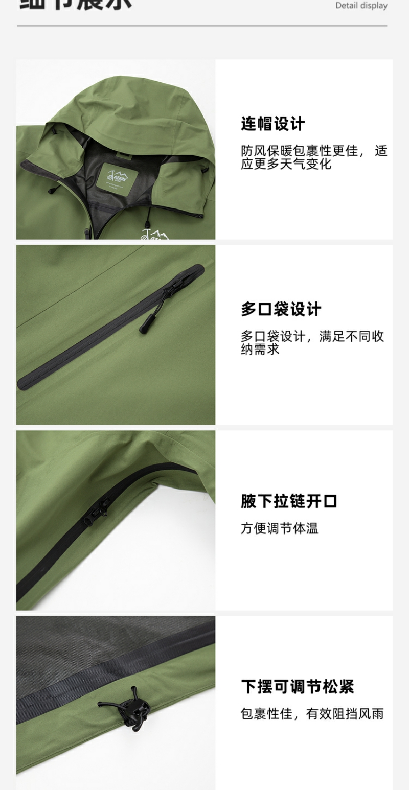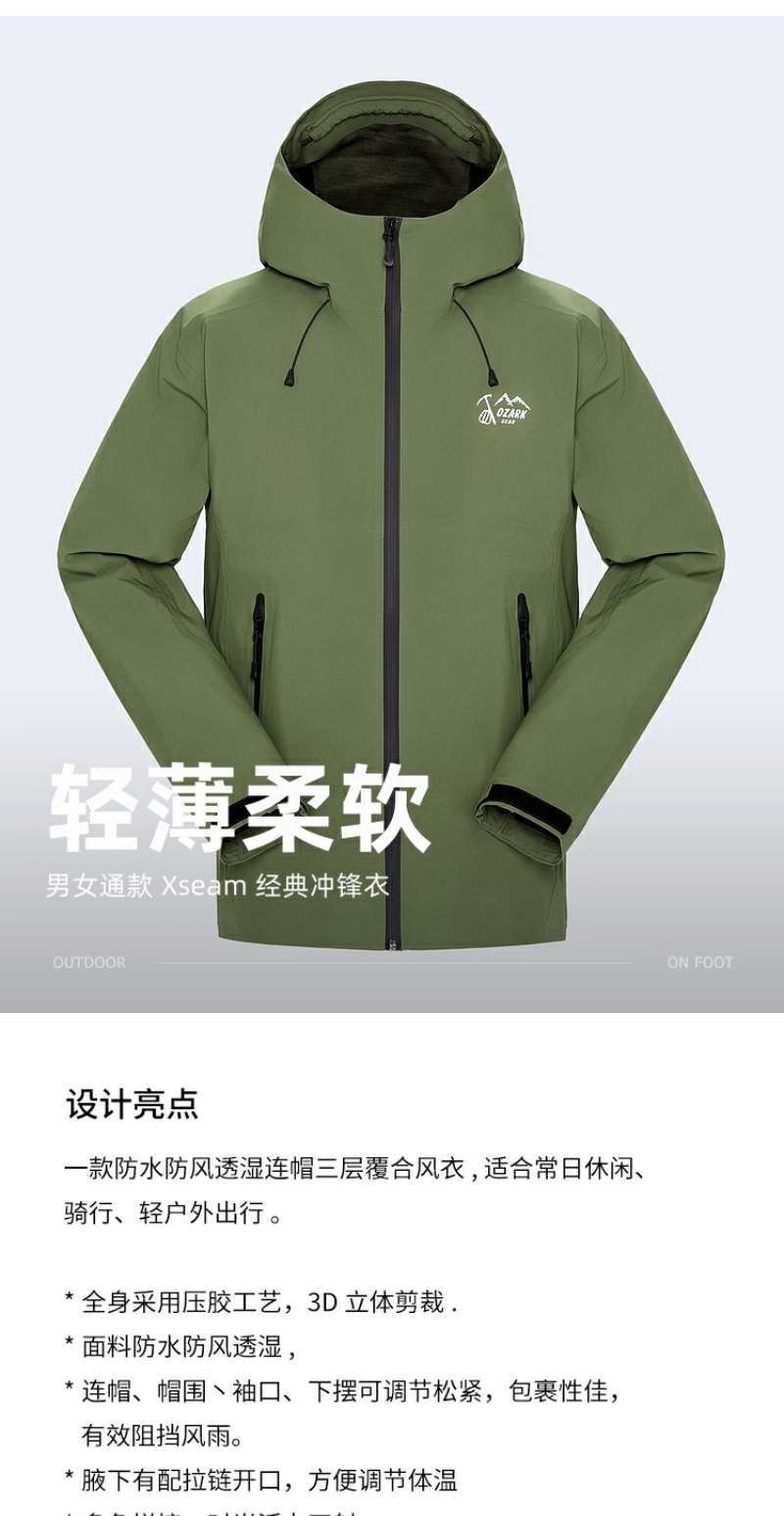 OZARK/奥索卡XSEAM 经典冲锋衣男女同款春季新款户外防风防水连帽1312160