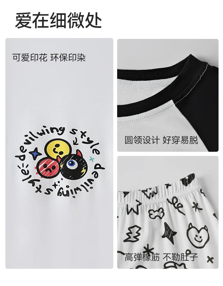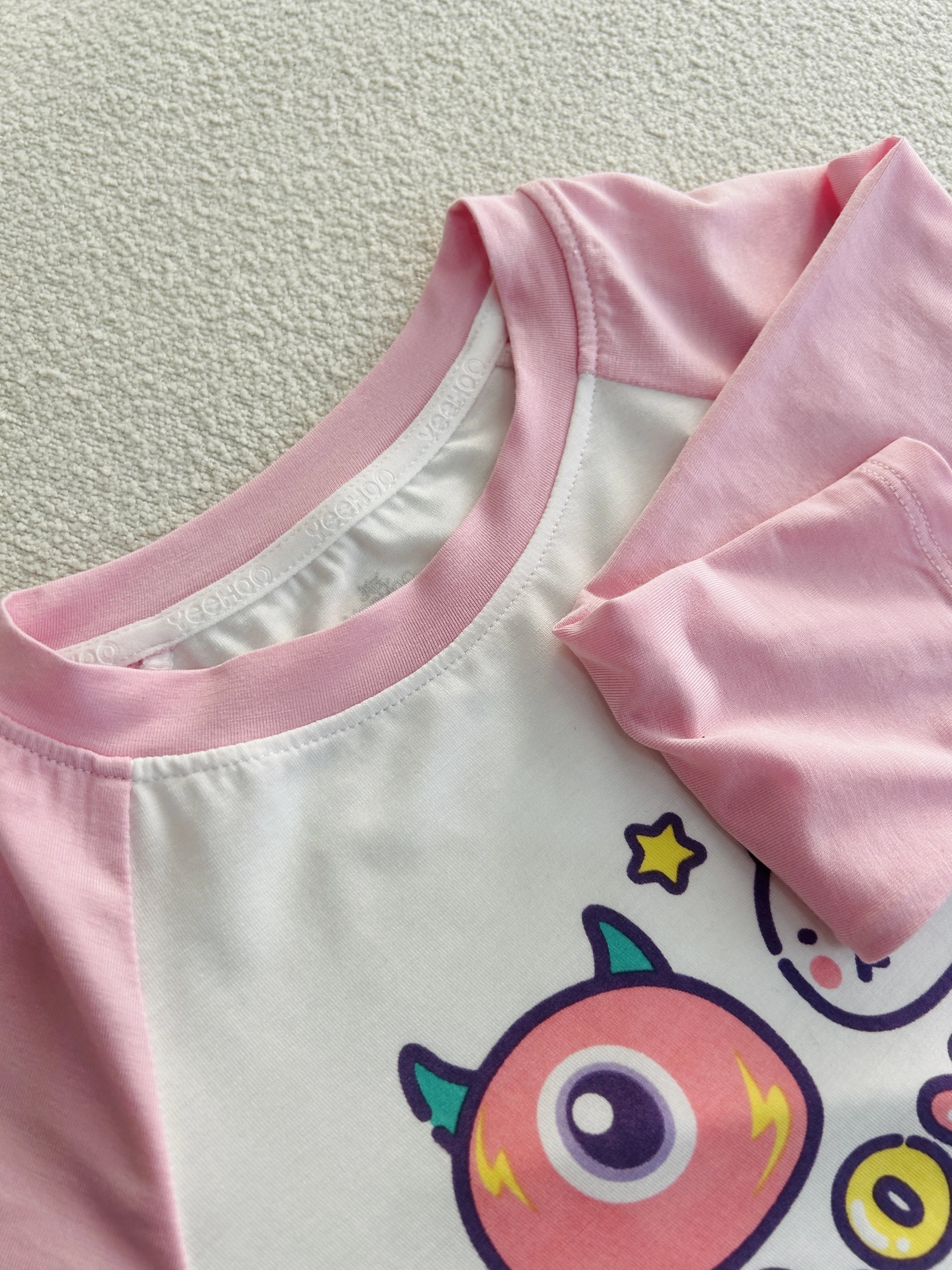 ✔️萌趣 IP 图案:插肩袖+撞色,配色清新不艳俗,孩子一看就喜欢,天天主动要穿