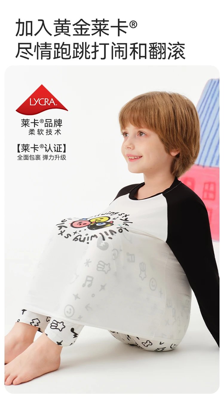 ✅ 弹力拉满无束缚:四面高弹设计,孩子跑跳、翻身、打滚都灵活自如,完全不勒身、不卡裆
