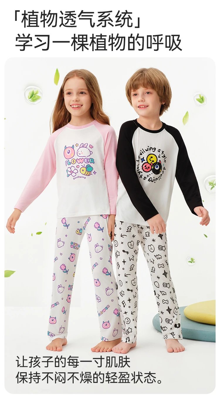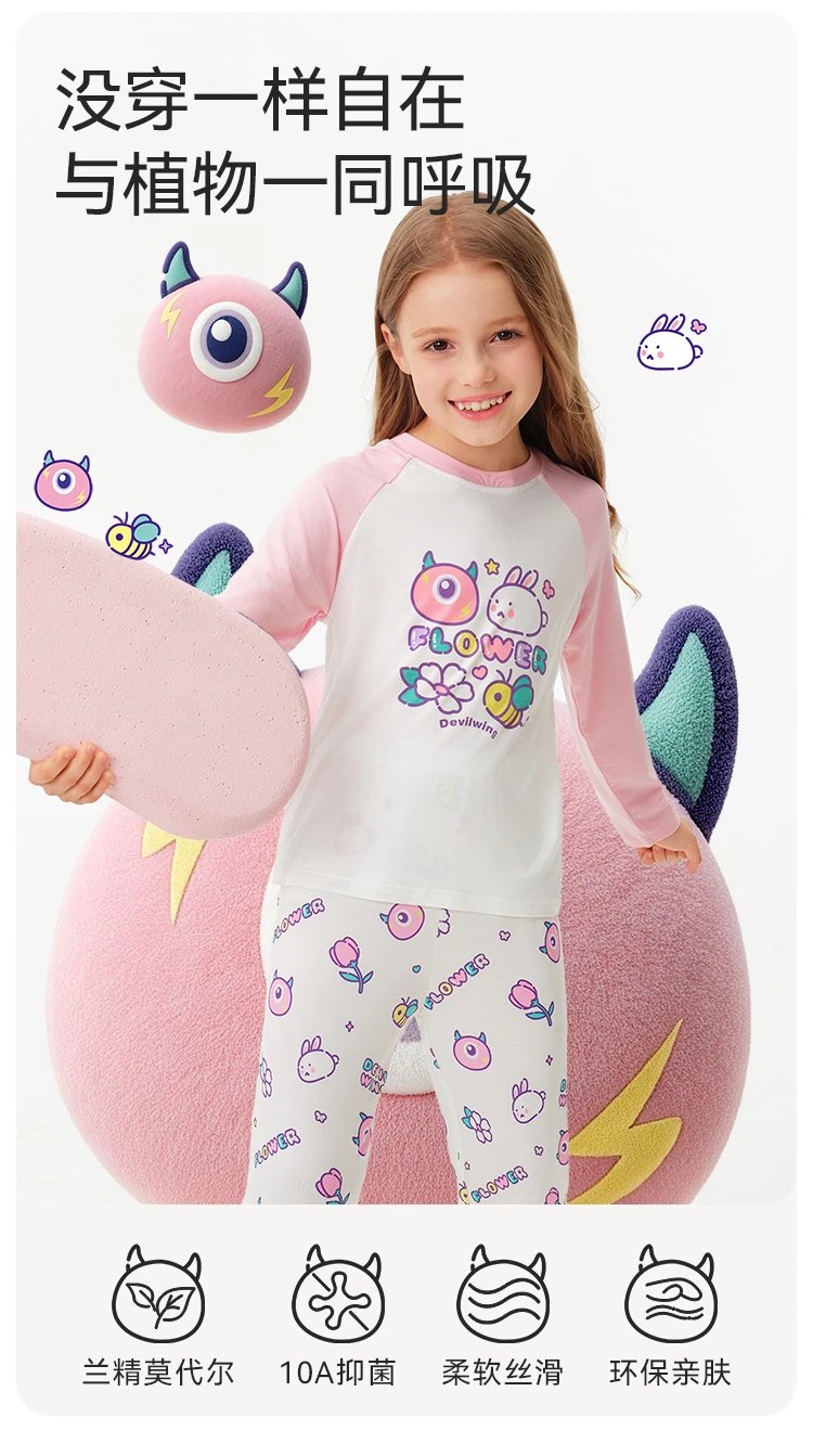 英氏王炸新品—— 专为男女中大童定制的春夏款兰精莫代尔长袖家居服套装,堪称 “行走的小空调 + 移动抑菌盾”!