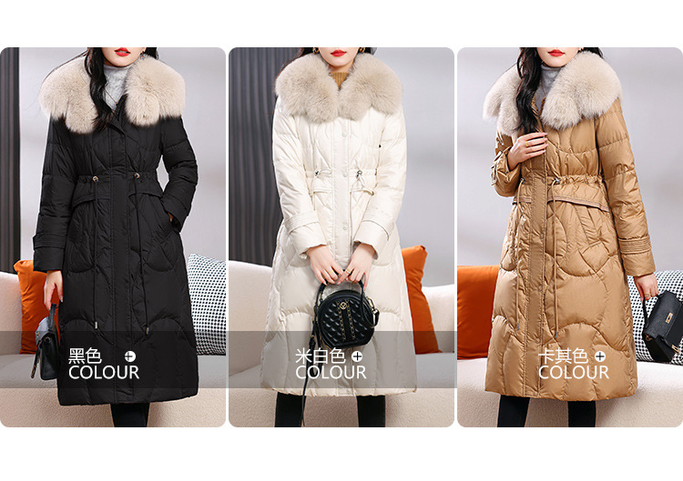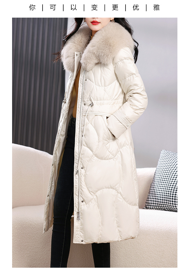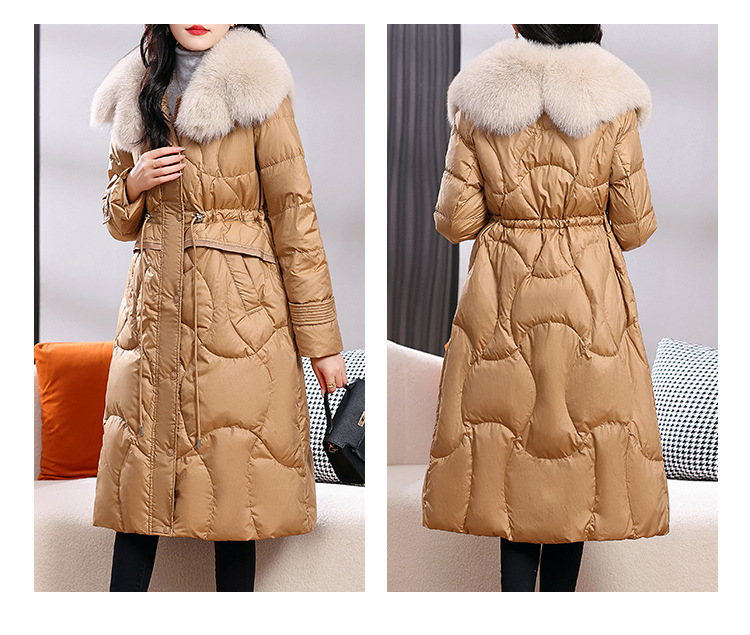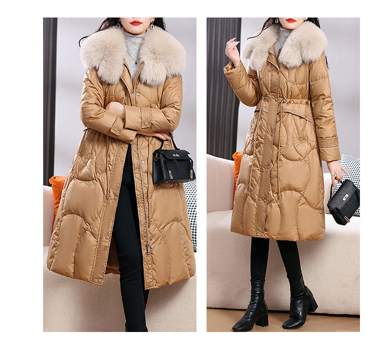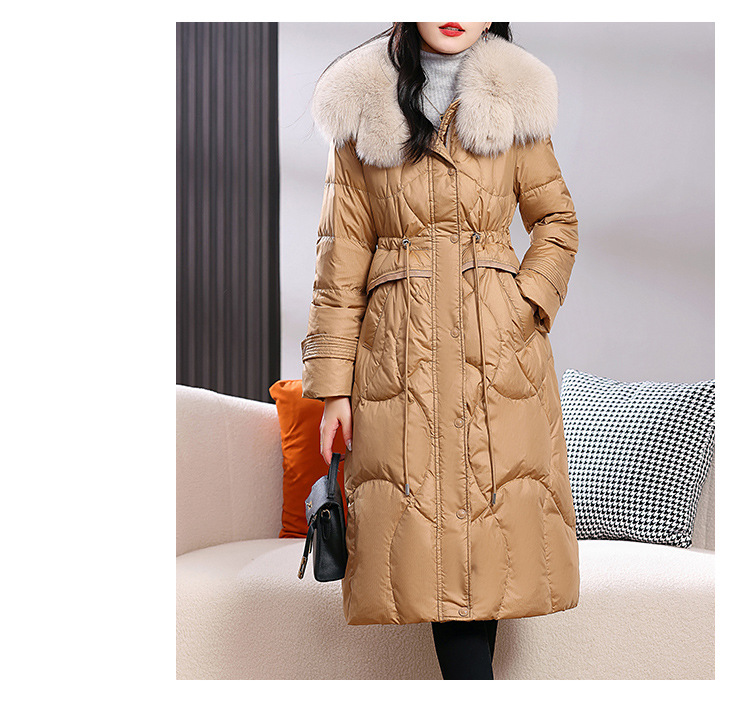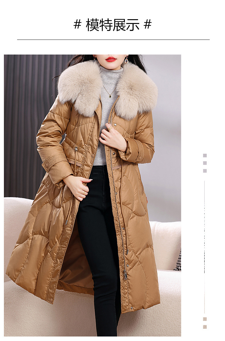 TC25440 卡其色白鸭绒羽绒服女中长款过膝2023冬时尚洋气狐狸毛领外套收腰 商品图4