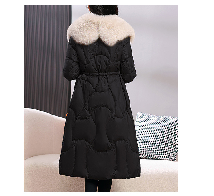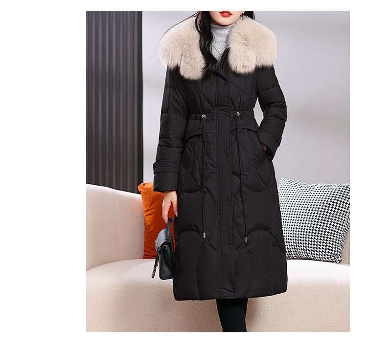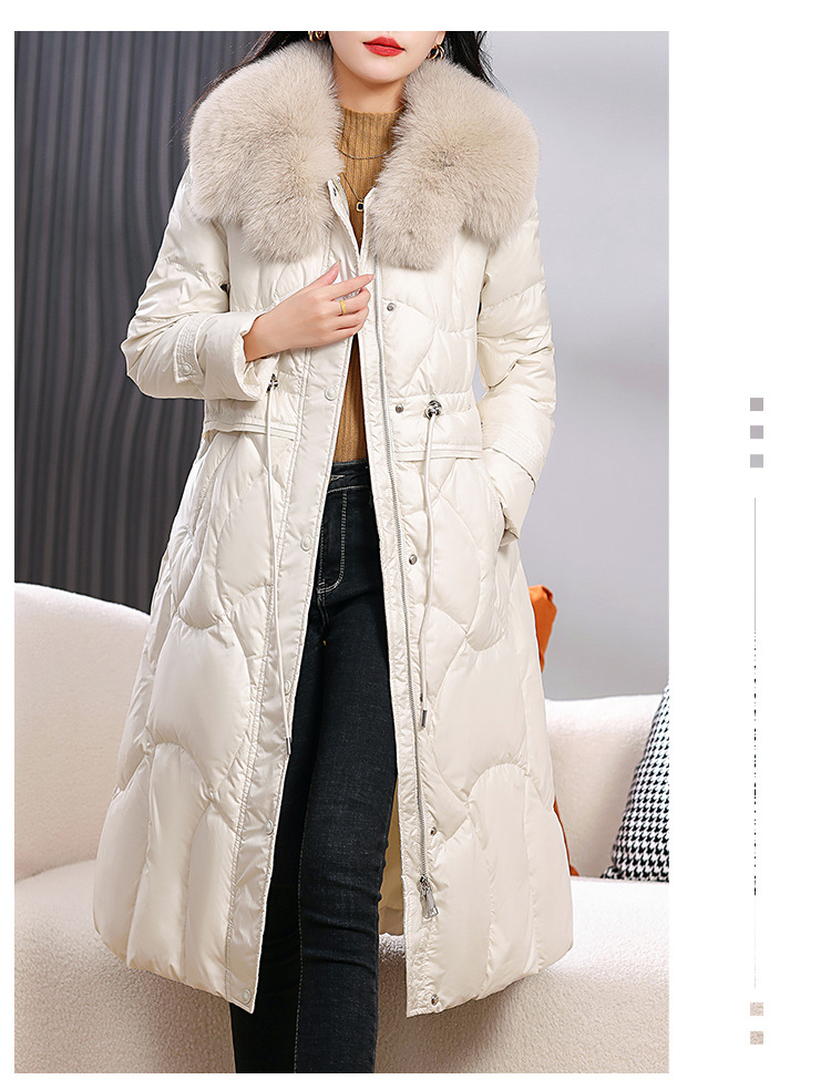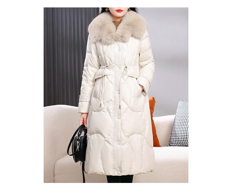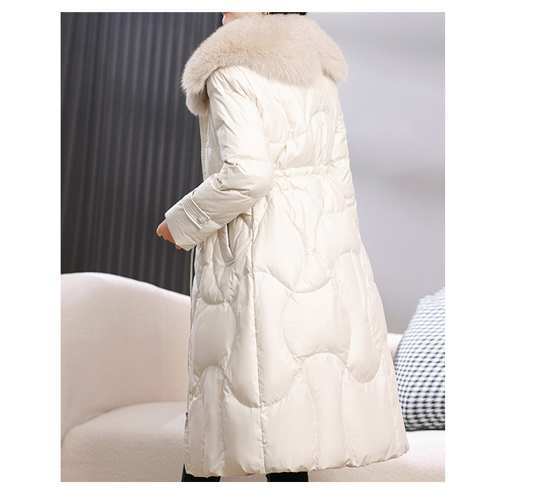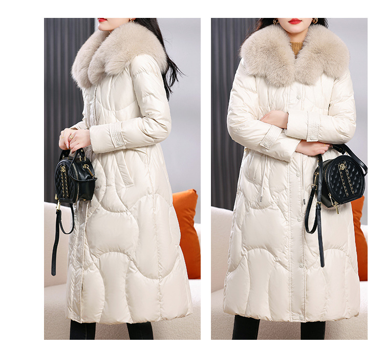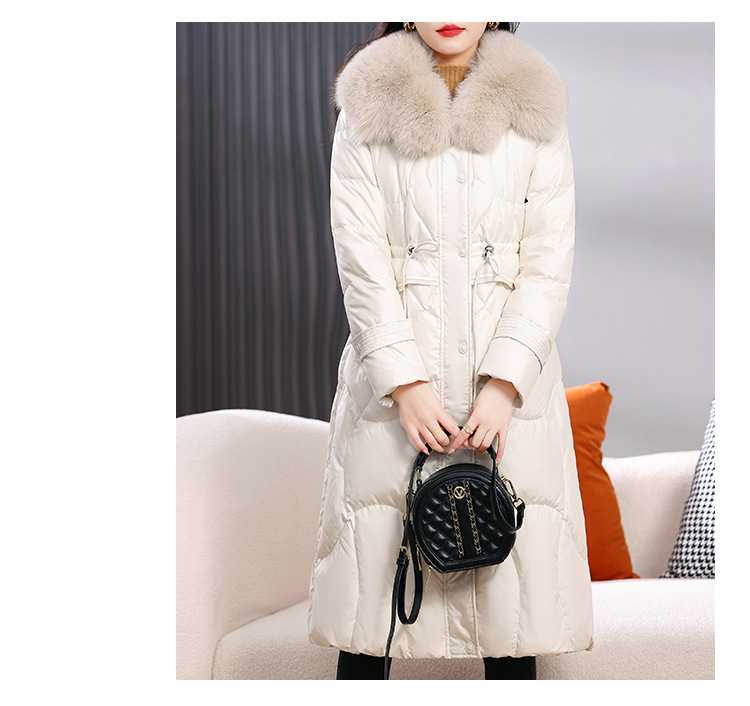 TC25440 卡其色白鸭绒羽绒服女中长款过膝2023冬时尚洋气狐狸毛领外套收腰 商品图4