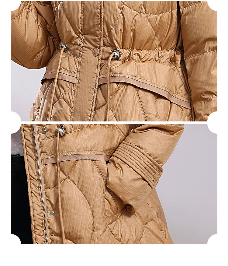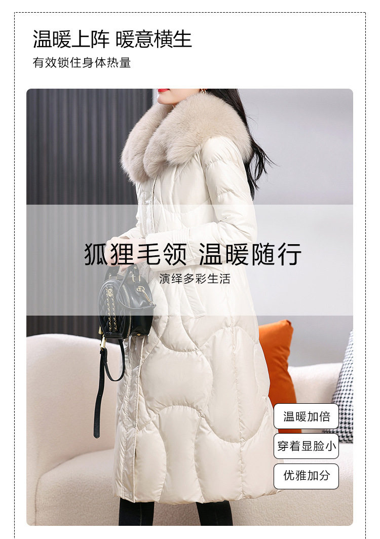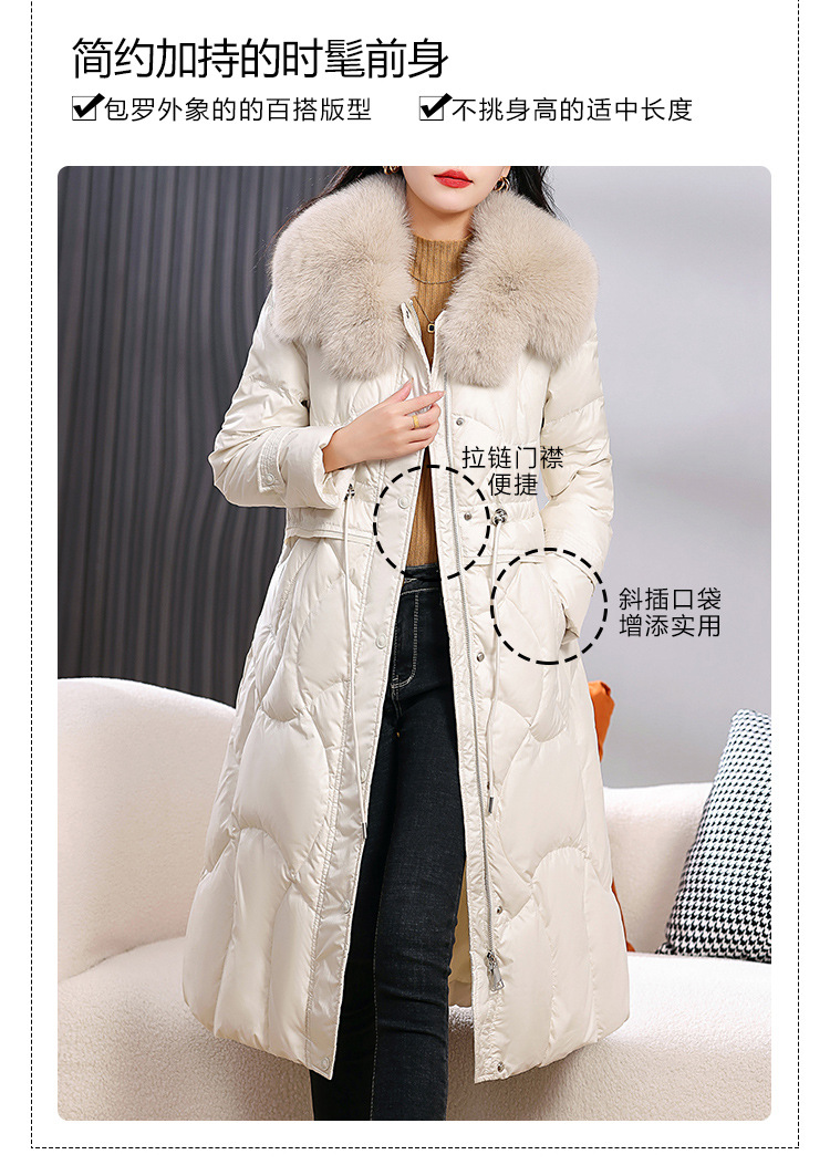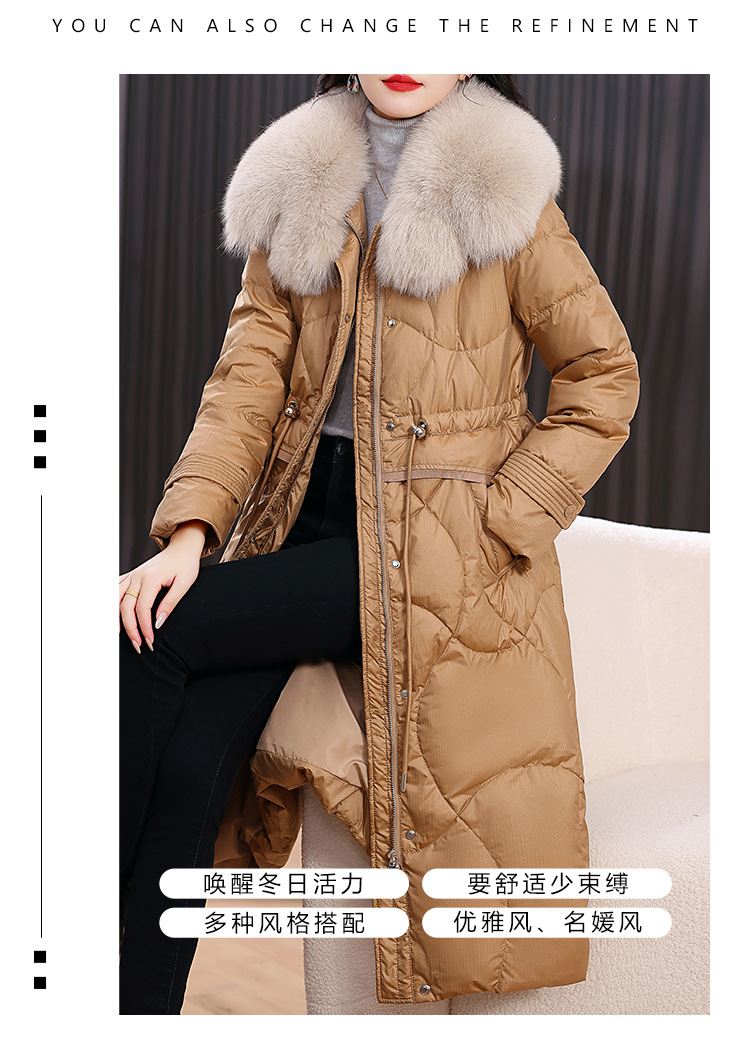 TC25440 卡其色白鸭绒羽绒服女中长款过膝2023冬时尚洋气狐狸毛领外套收腰 商品图2