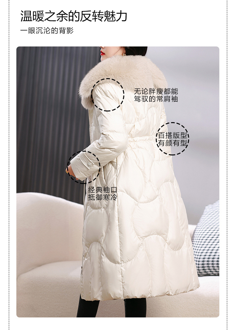 TC25440 卡其色白鸭绒羽绒服女中长款过膝2023冬时尚洋气狐狸毛领外套收腰 商品图3