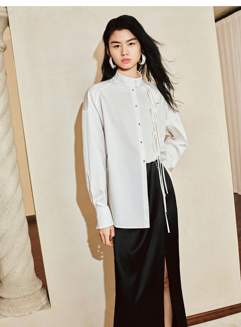 【东方玉兰-商场同款新品】MAXRIENY复古艺术感中式立领玉兰衬衫202(货号:MC85TP041)