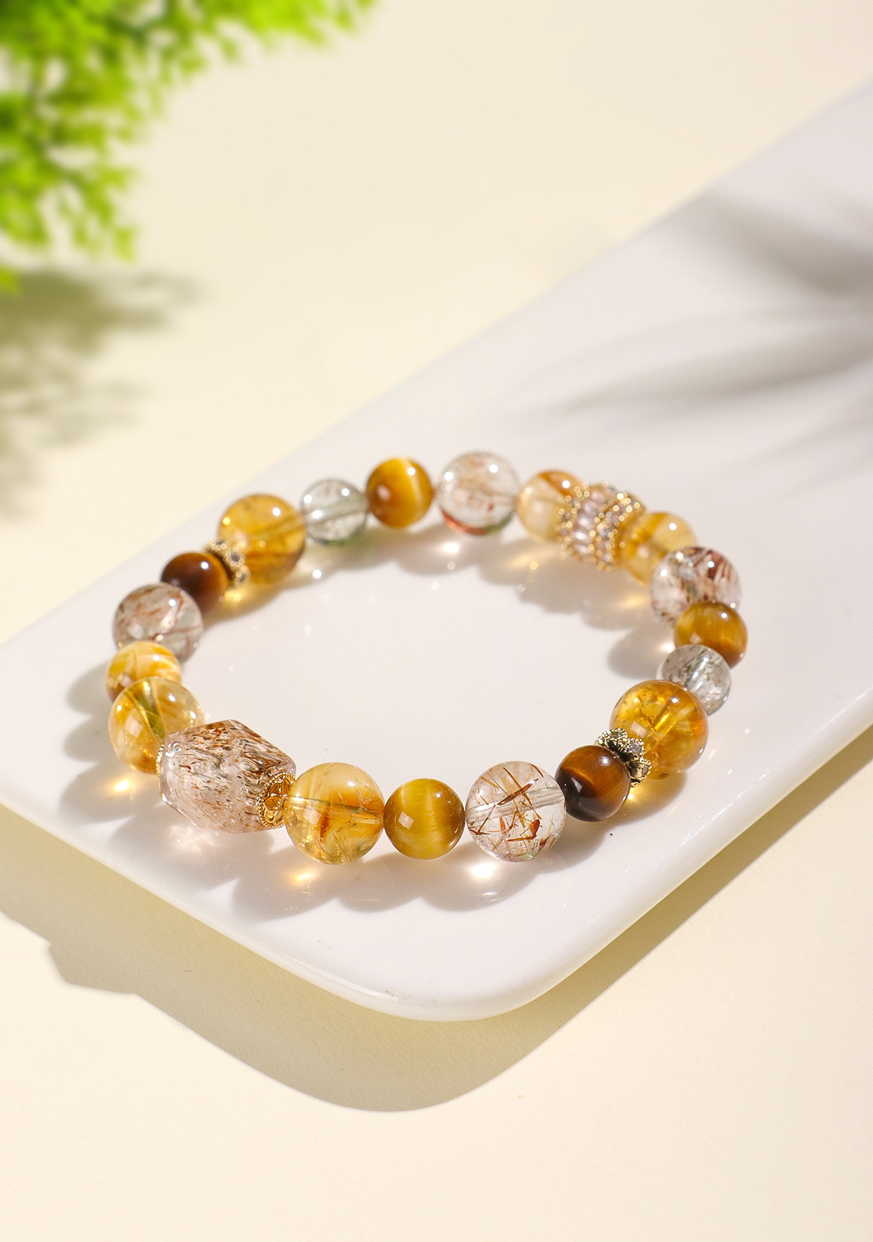 丁摩 好运天然多宝水晶串珠手链女时尚高级感黑金超七金发晶水晶手串首饰6ZF-5980