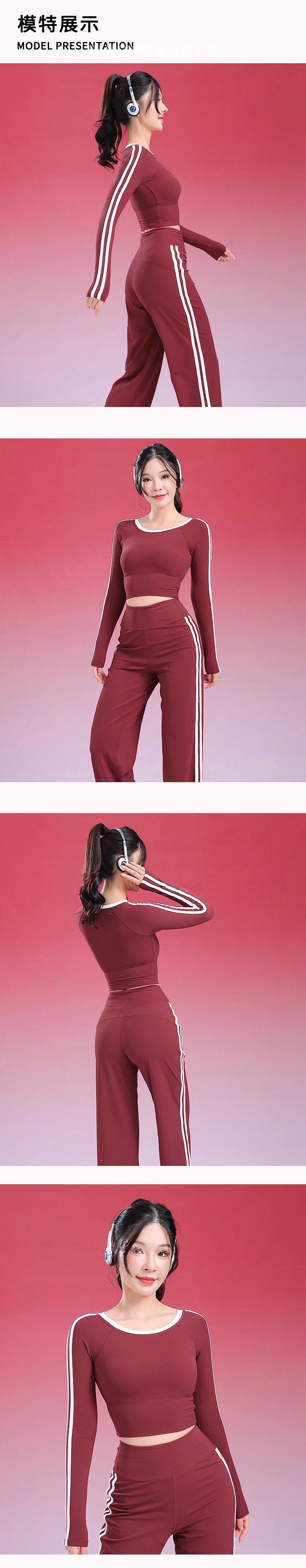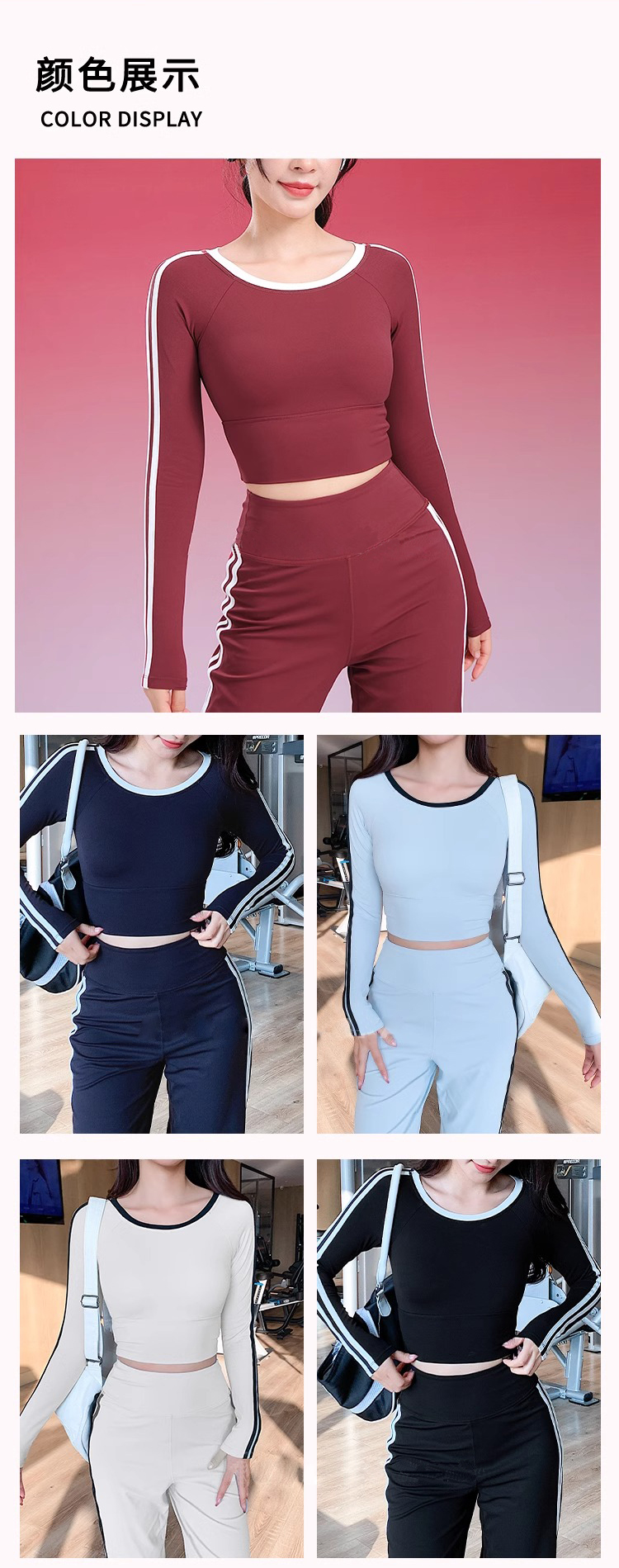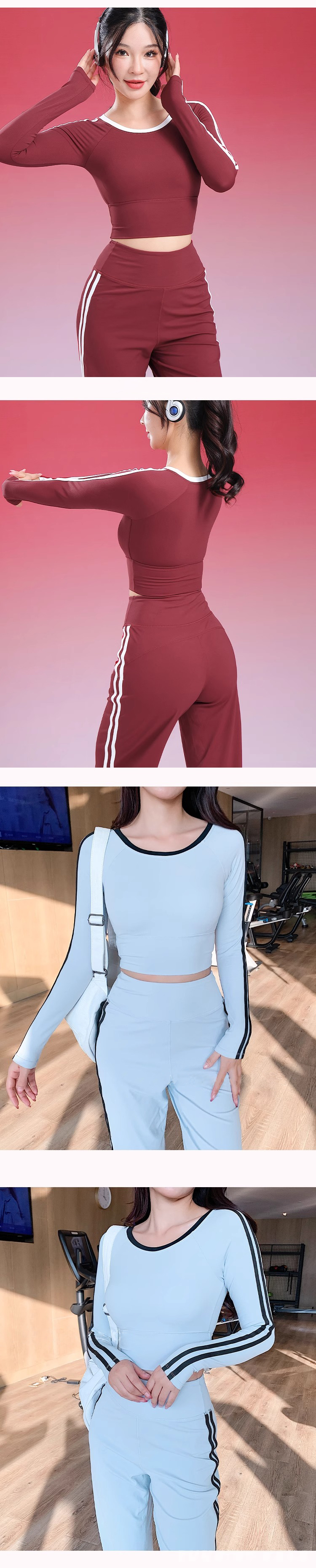 跃牌【禅语梵心】美式辣妹瑜伽服长袖带胸垫跑步速干运动文胸一体杯健身服上衣CX5095