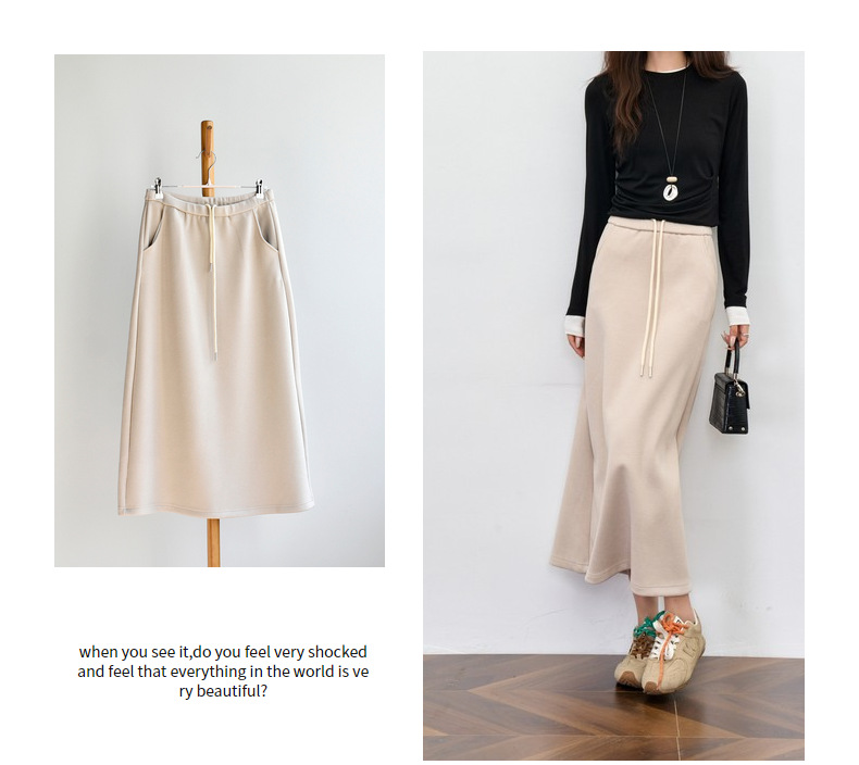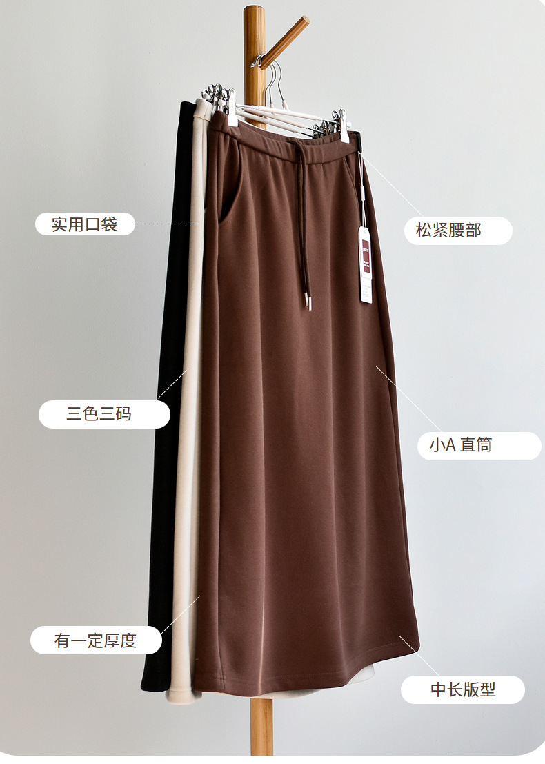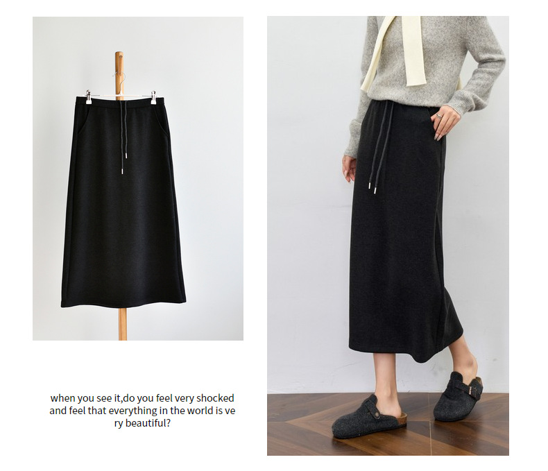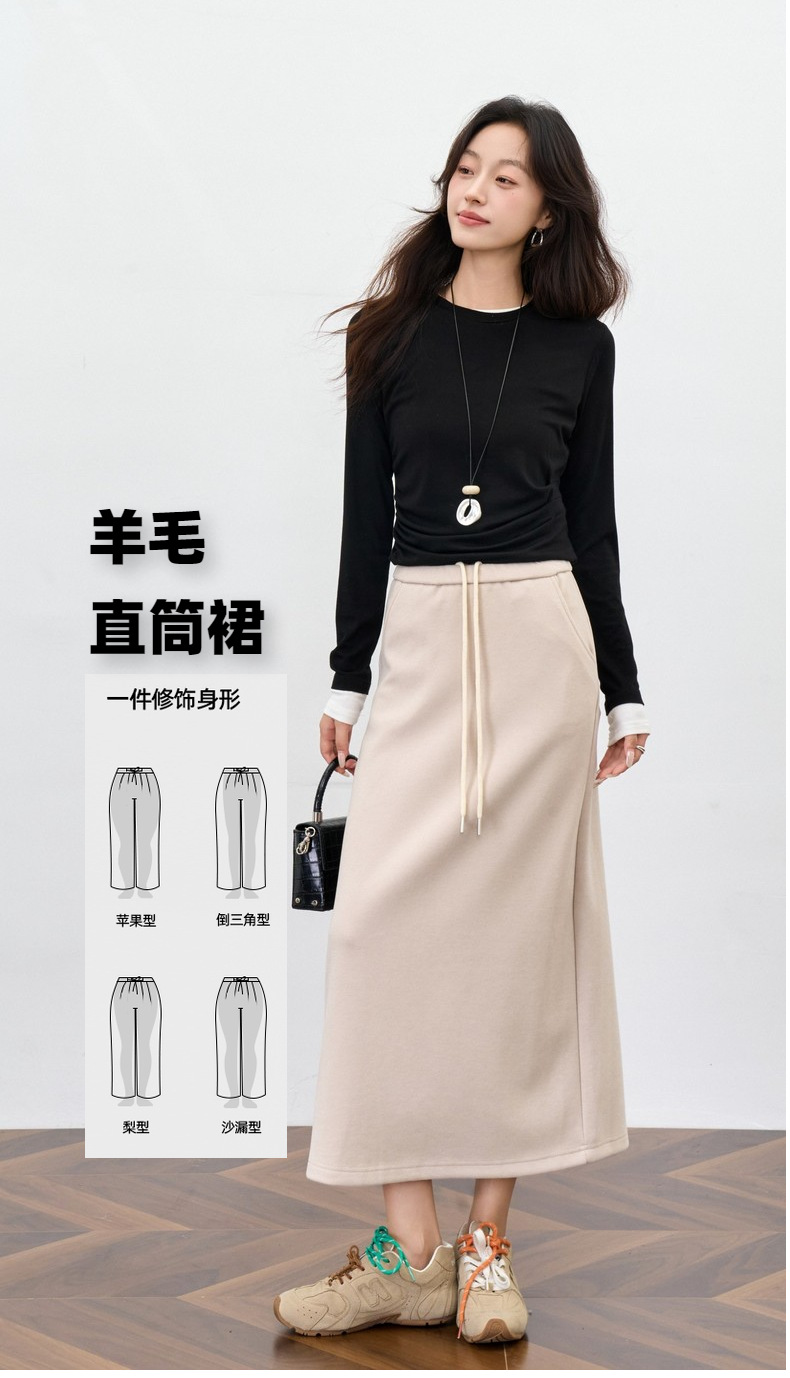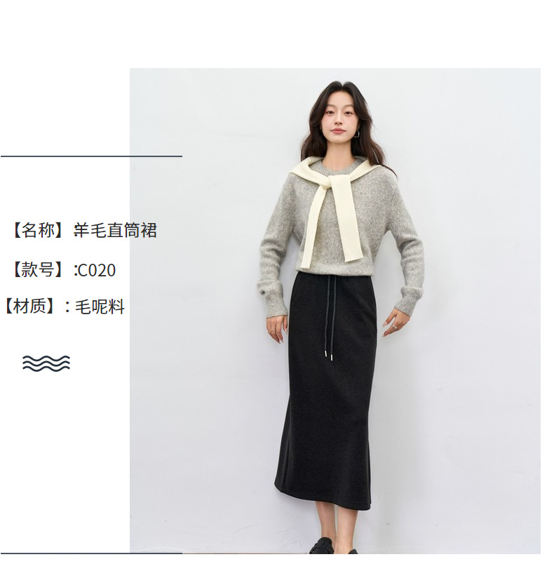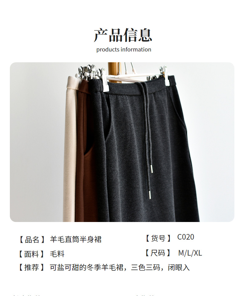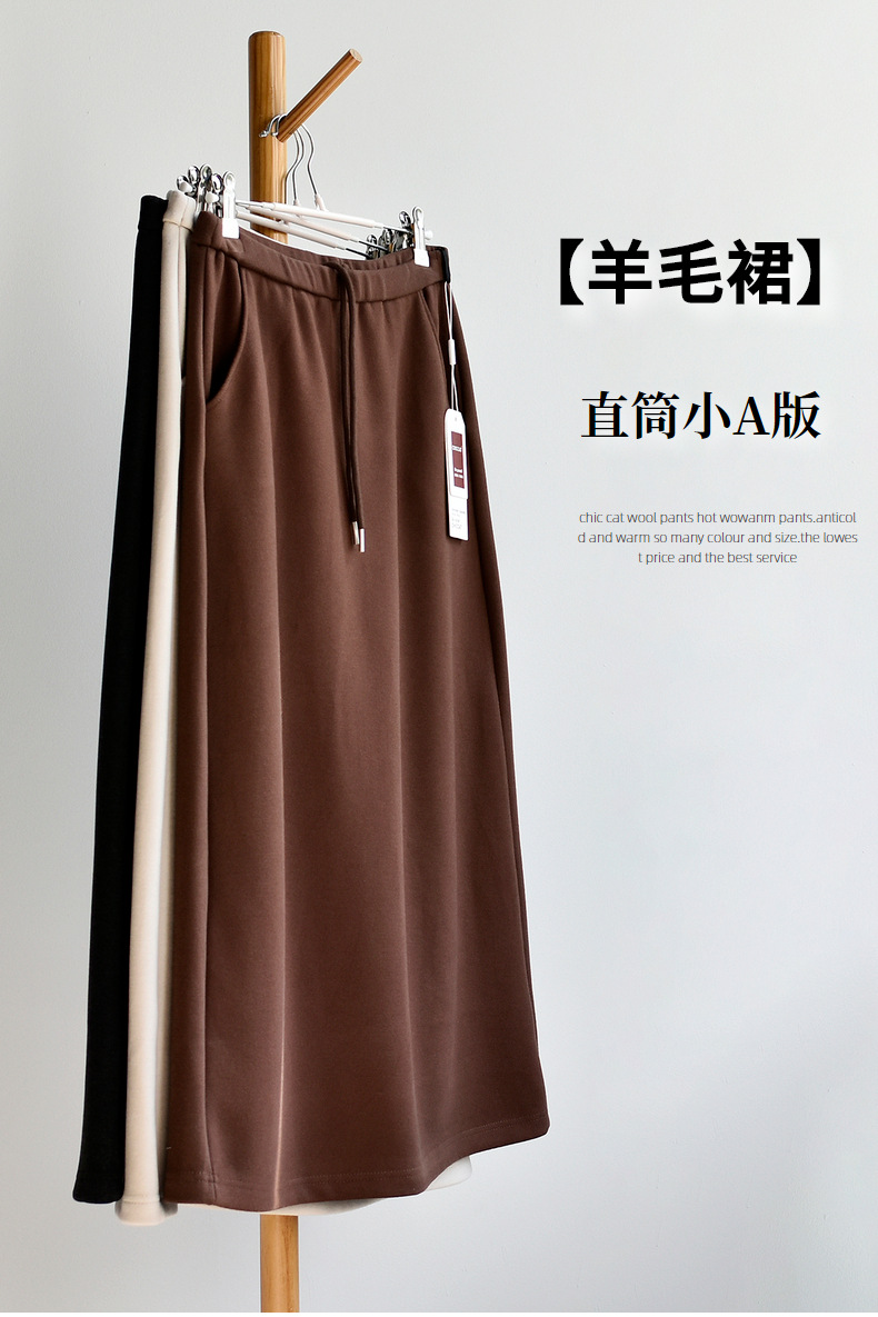 丁摩 【羊毛直筒裙】秋冬加绒加厚羊毛小A字宽松直筒中长半身裙子5ZF-C020
