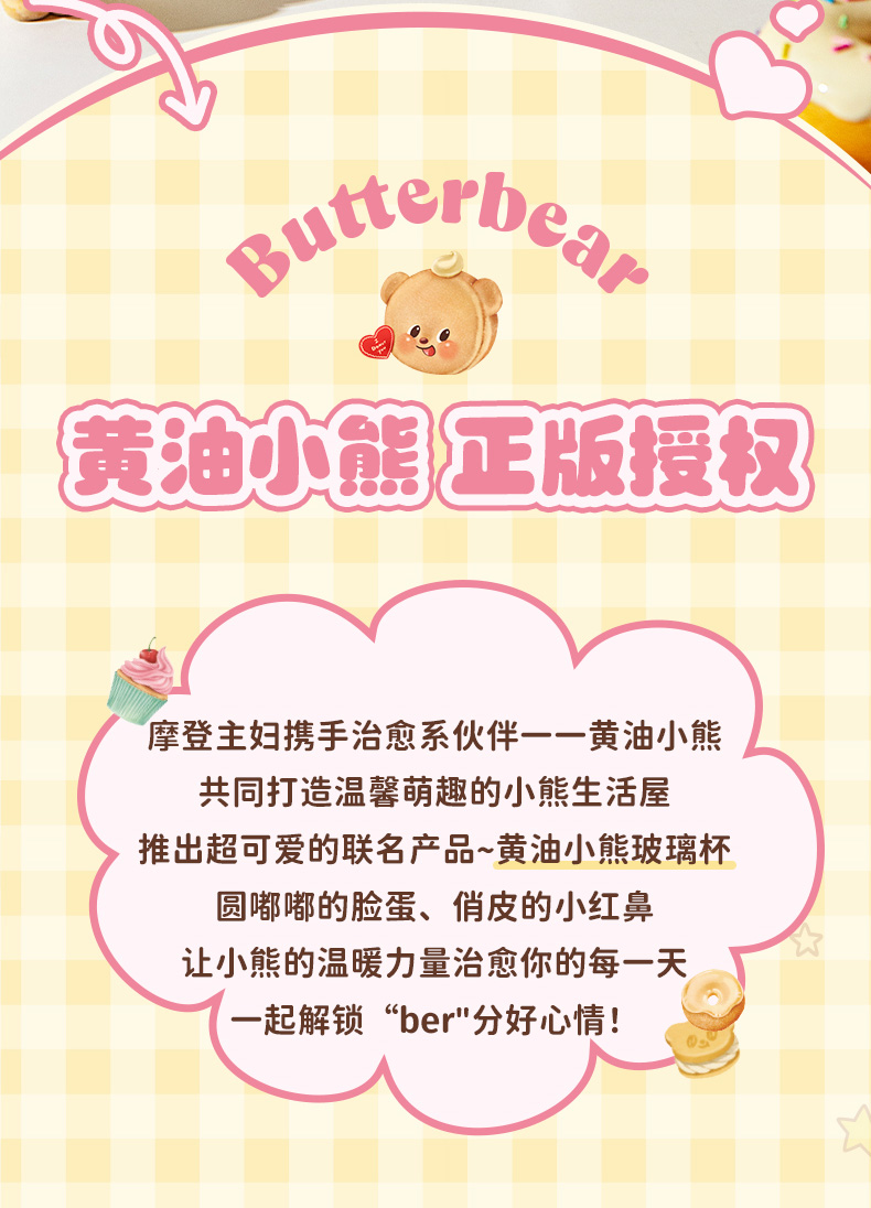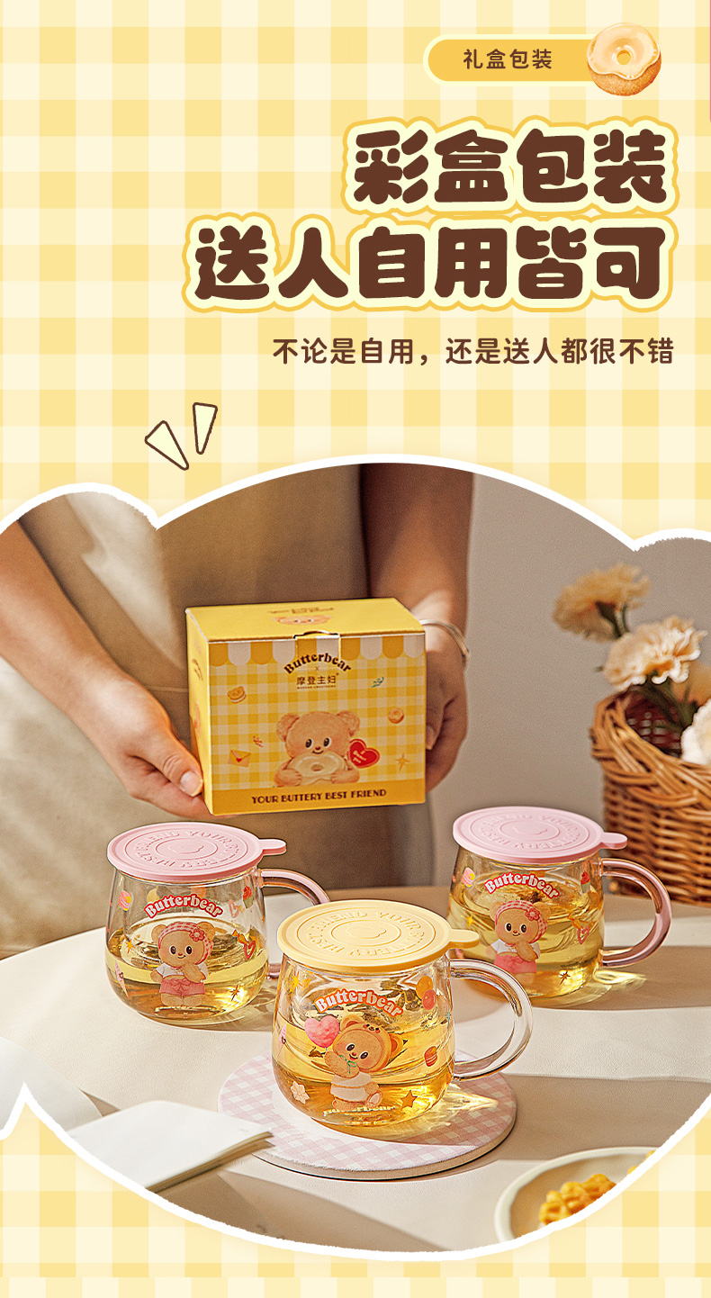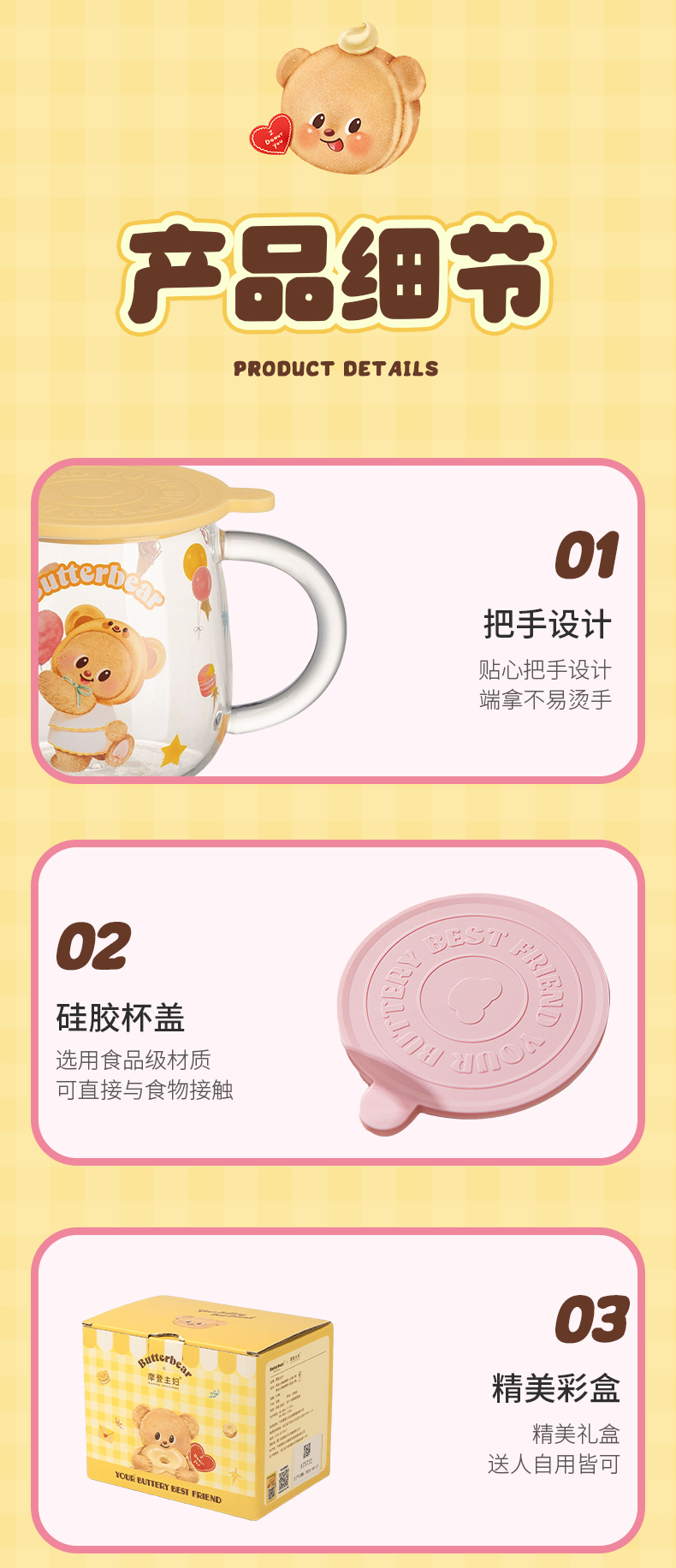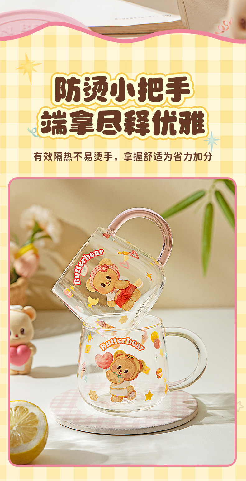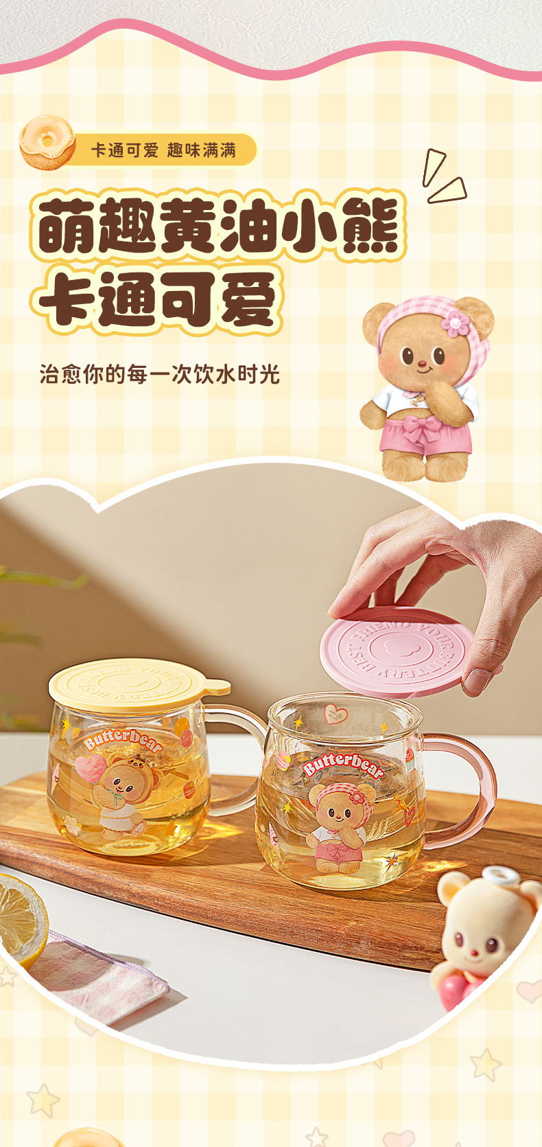 【摩登主妇&黄油小熊】高硼硅玻璃杯带盖水杯家用牛奶杯饮料杯子
