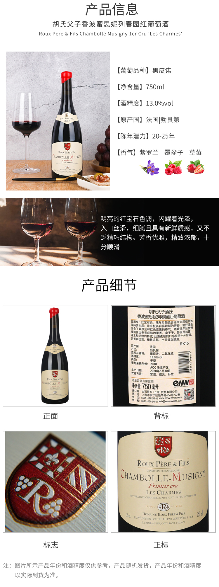 胡氏父子香波蜜思妮列春园红葡萄酒 2020 Roux Père & Fils, "Les Charmes", Chambolle-Musigny 1er Cru AOP Burgundy
