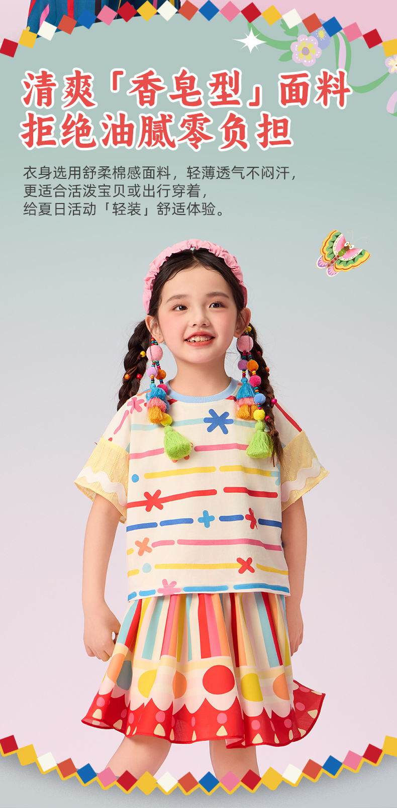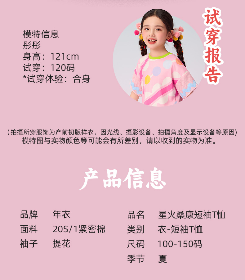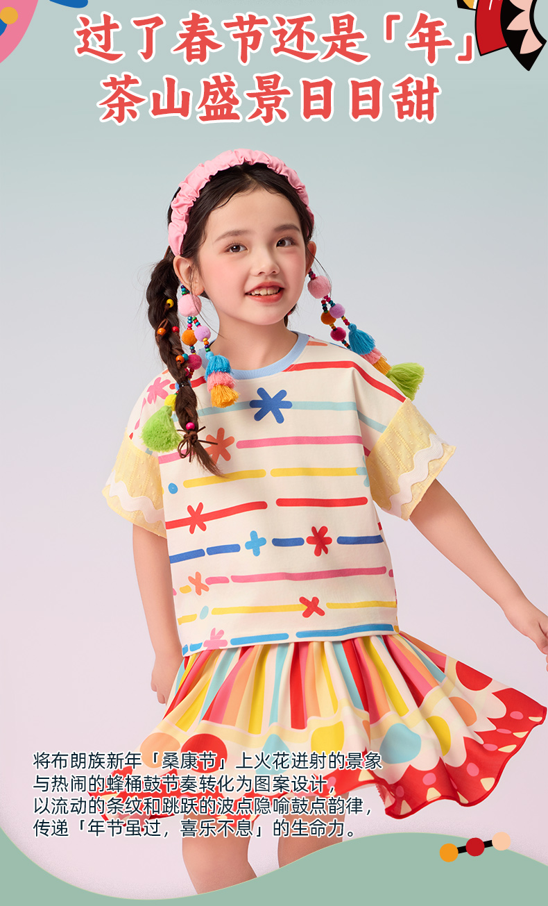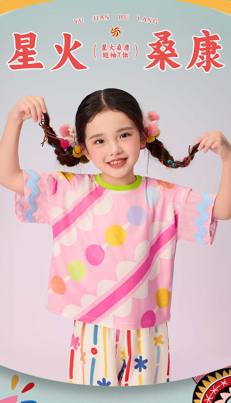 【年衣】女童短袖T恤2025夏季民族服饰新款凉感女宝星火桑康短袖T恤(预售5.28发货)