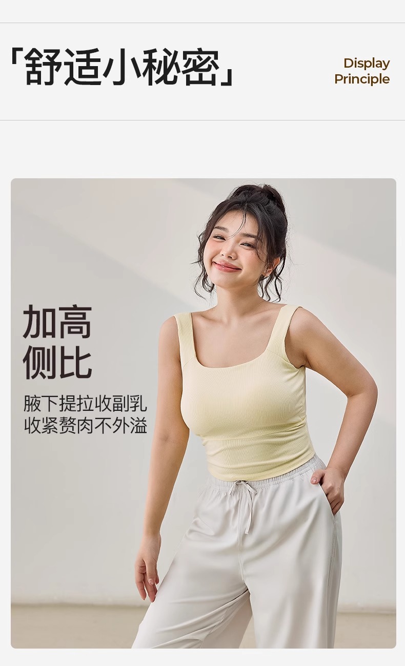 【限时秒】YOGACODE【火树银花系列】瑜伽服上衣背心带胸垫不跑杯宽肩收副乳大码女装DWB215154