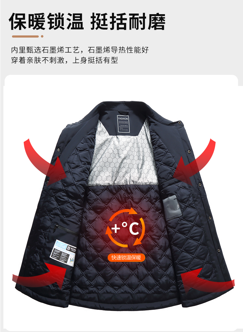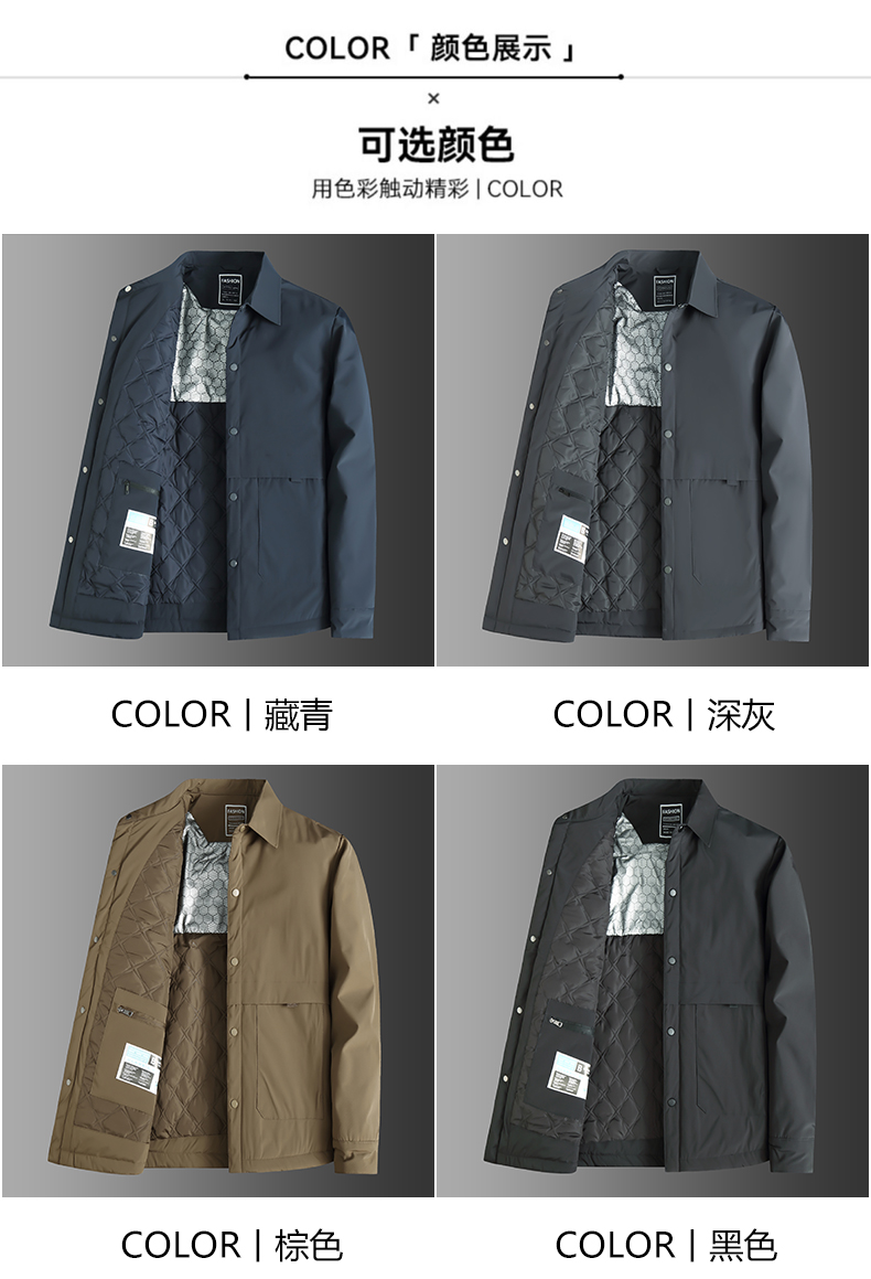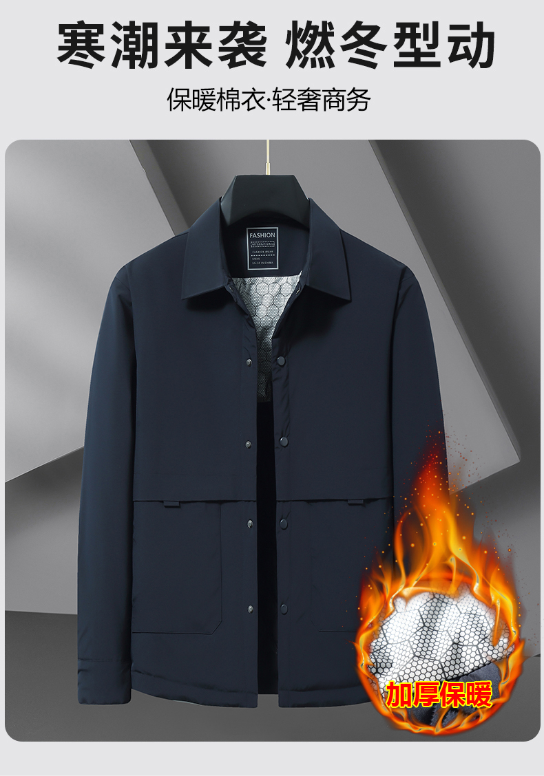 【棉衣】【新款DWN】大依优型大码翻领夹克加棉棉衣外套加肥加大肥佬休闲商务上衣男士胖子