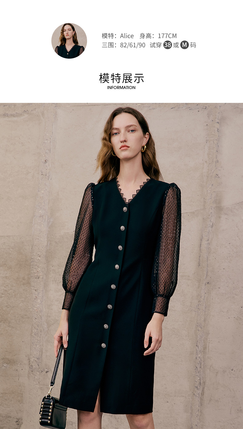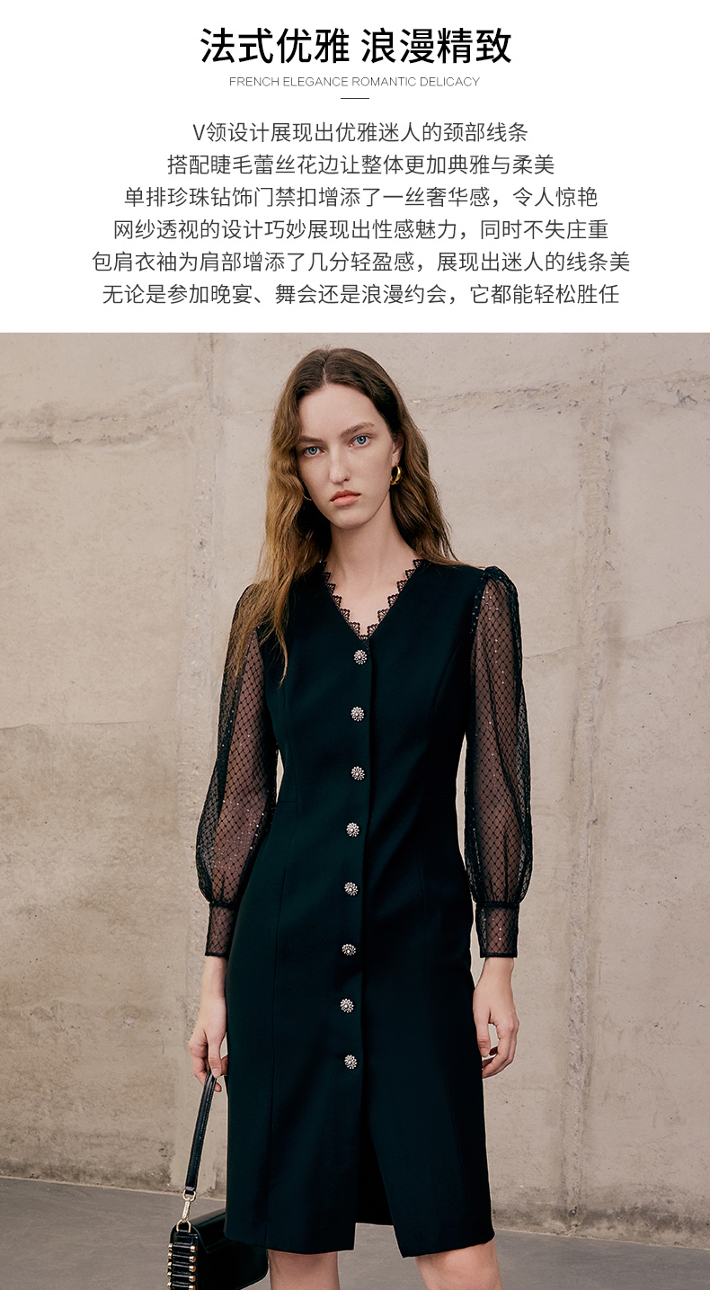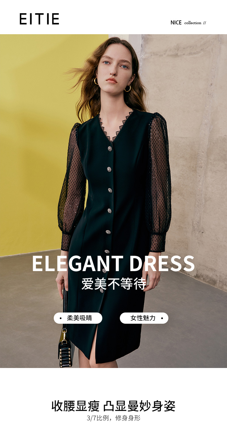 EITIE爱特爱春季新款袖口透视性感连衣裙7307034