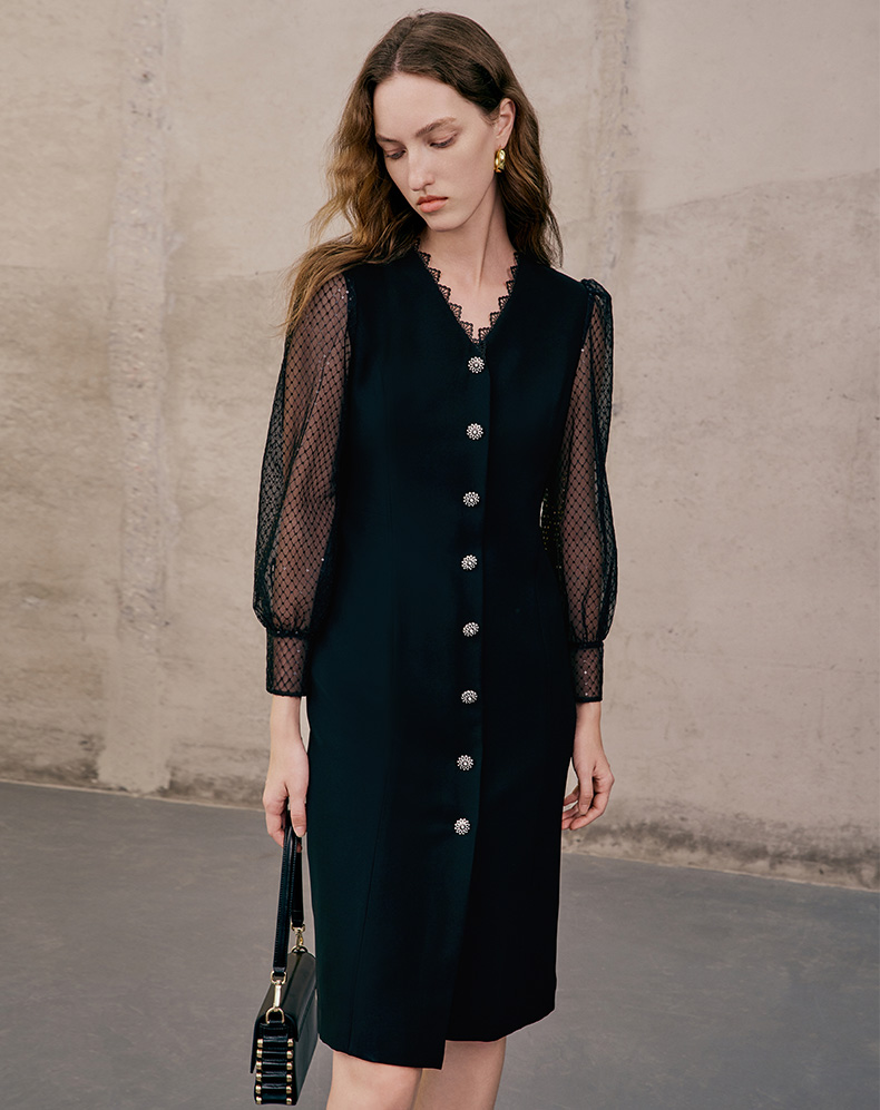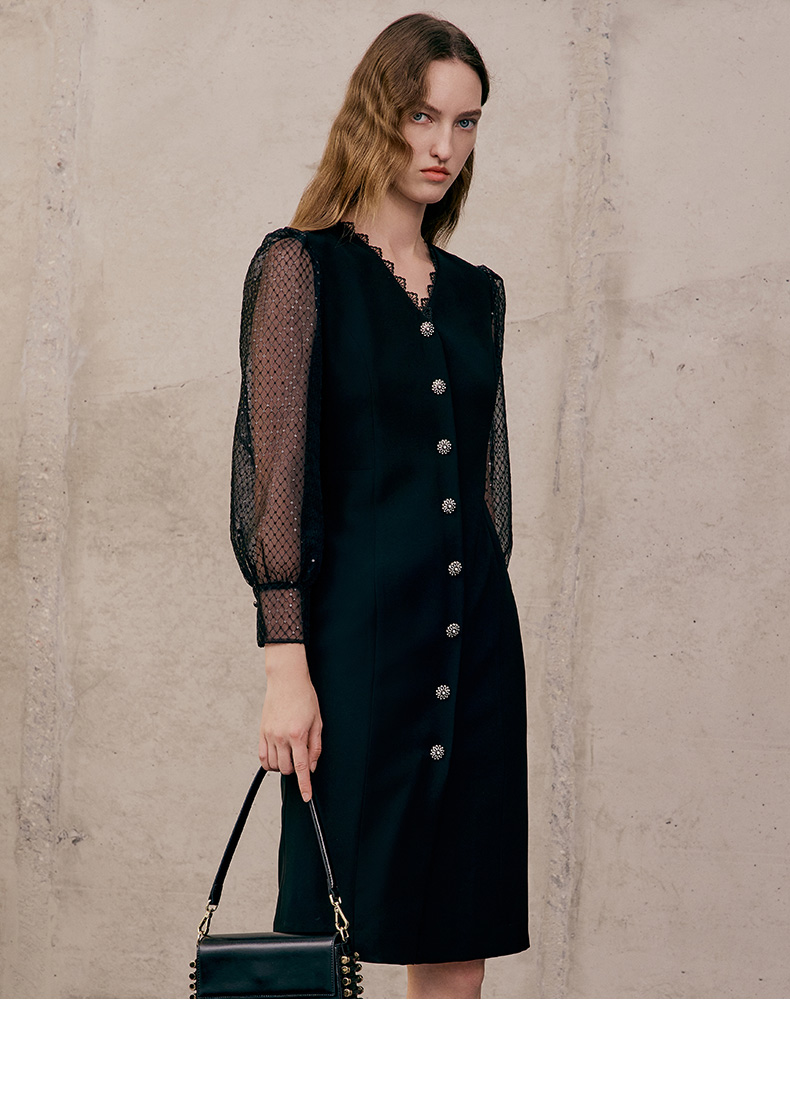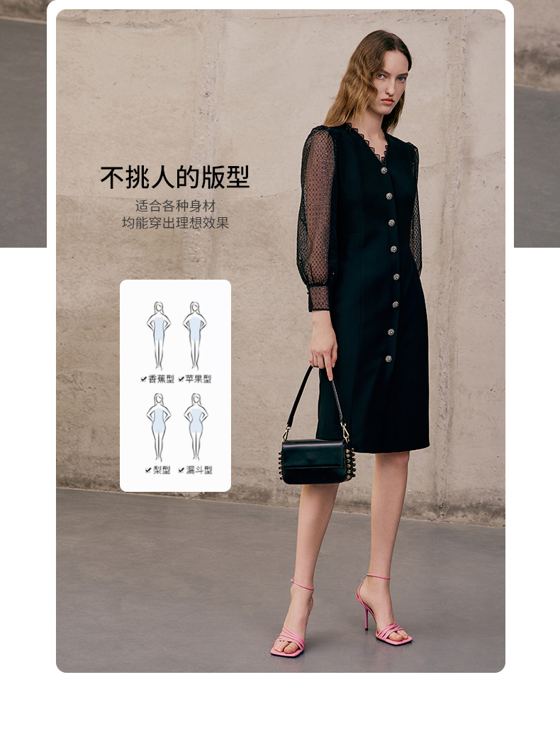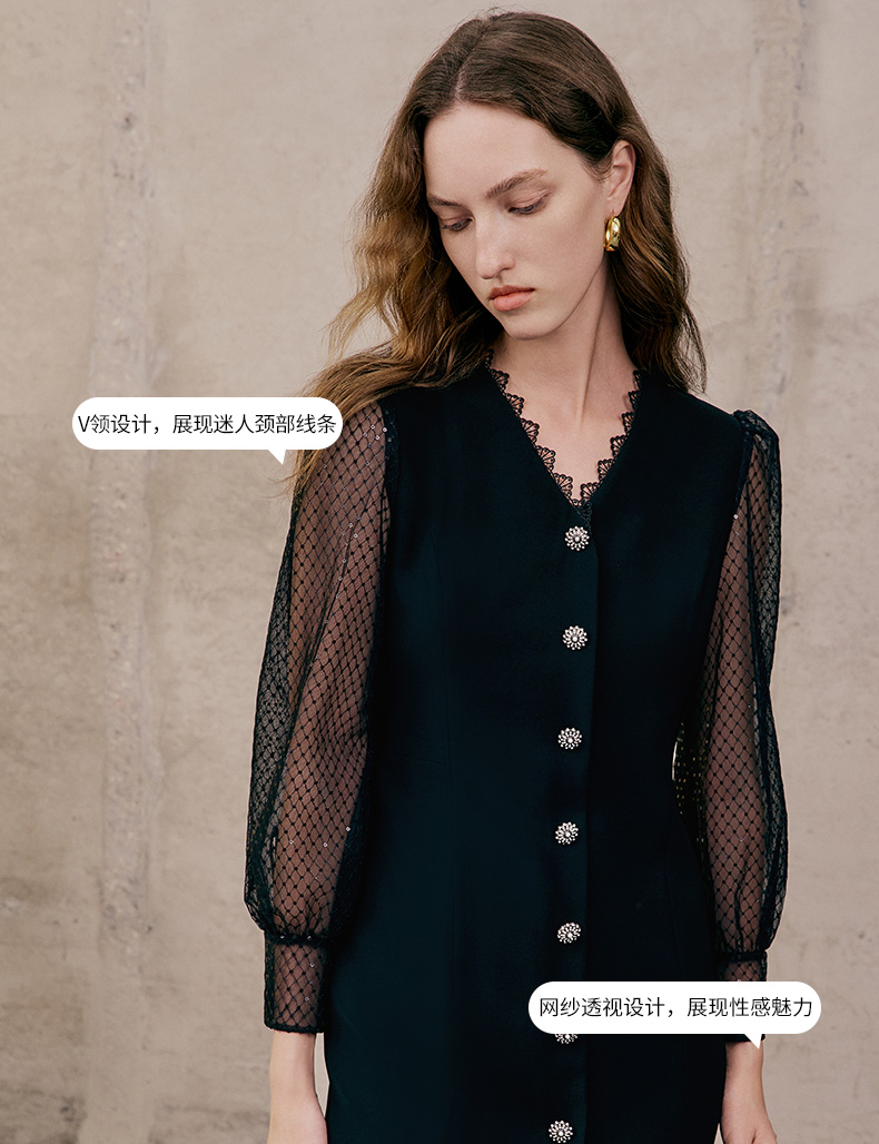 EITIE爱特爱春季新款袖口透视性感连衣裙7307034