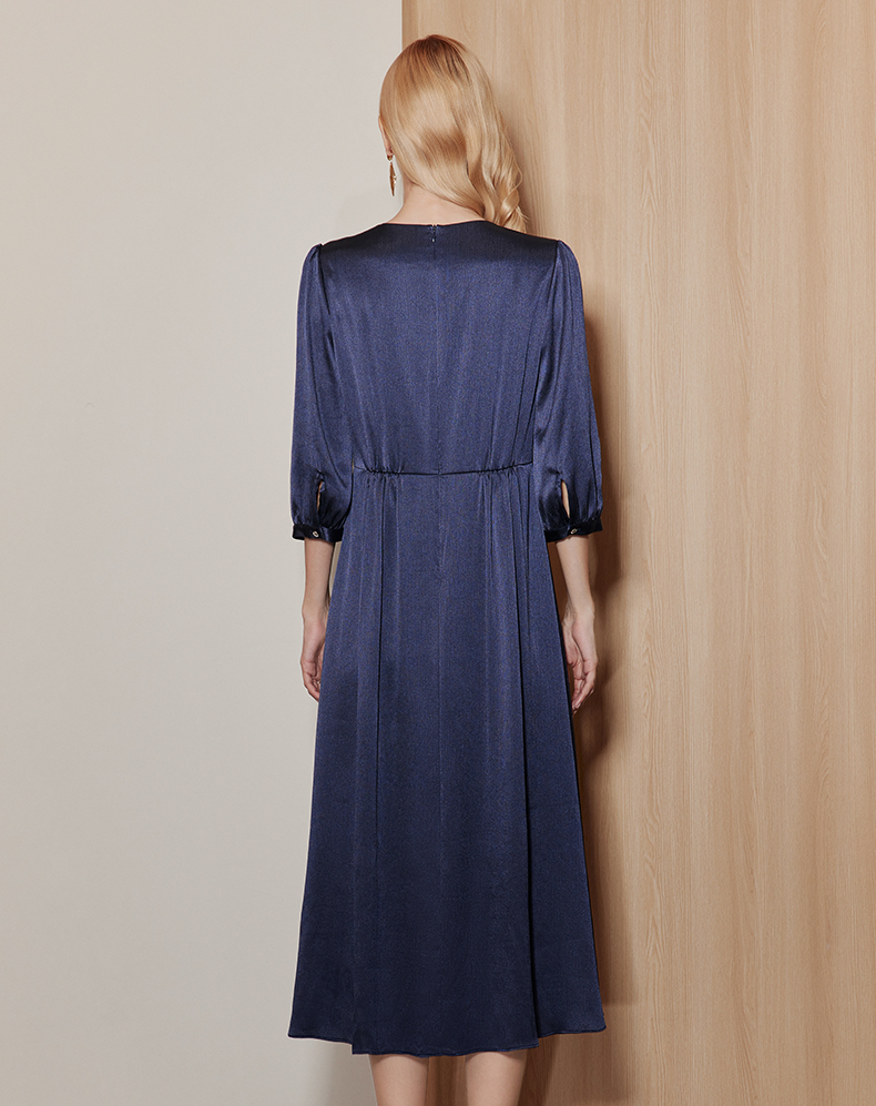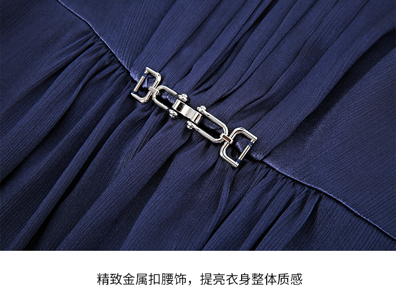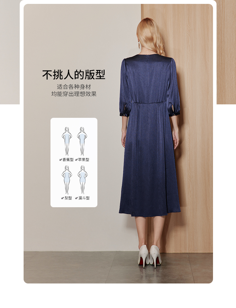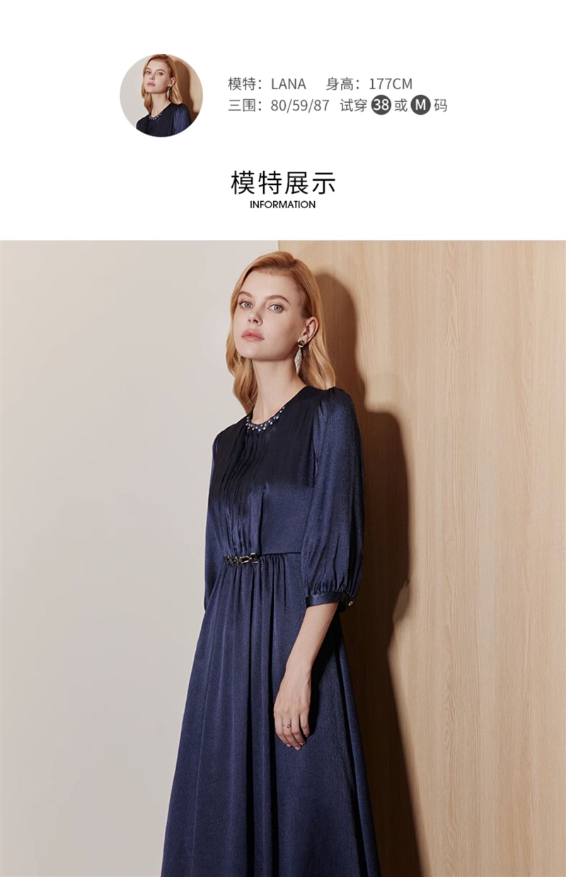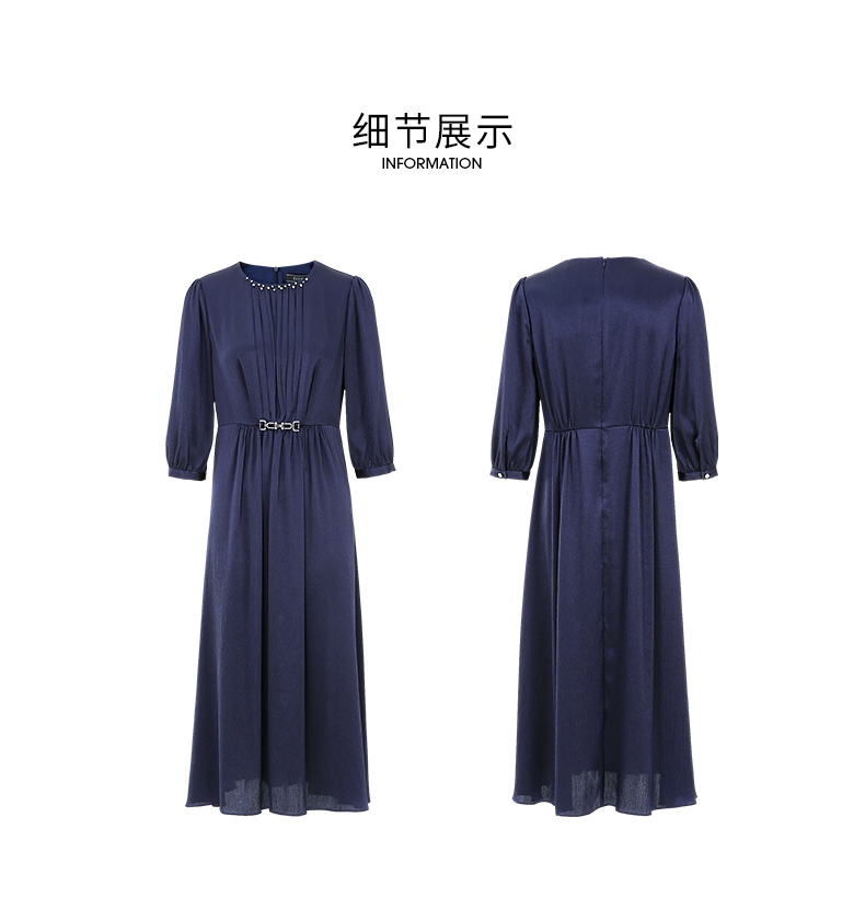 EITIE爱特爱精致钉珠优雅缎面垂坠收腰压褶显瘦连衣裙秋季新款A07119