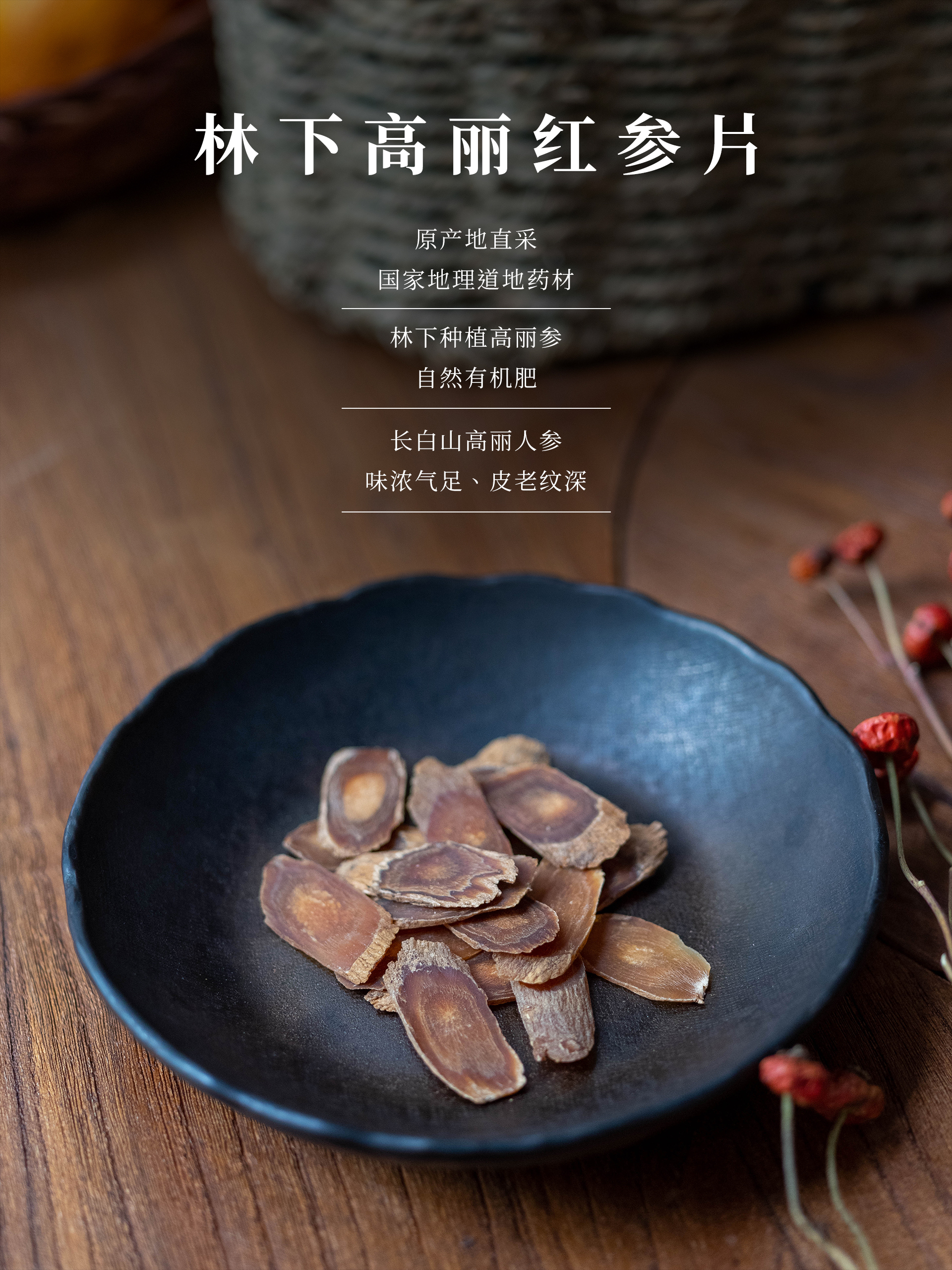 林下高丽红参片 | 自然有机种植肥,长白山高丽红参,皮老纹深