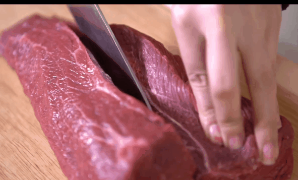 同时还需要精湛的工艺,才能将优质的牛肉打造成顶级的牛肉脯。将精选牛后腿肉去筋去骨去油脂, 顺着纹路均匀切片。
